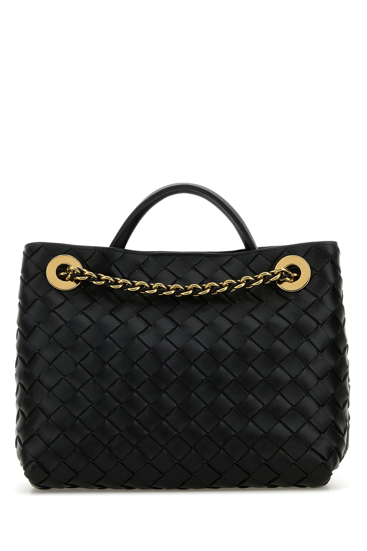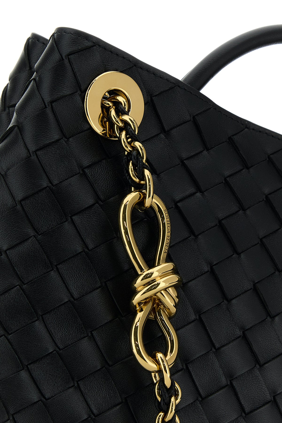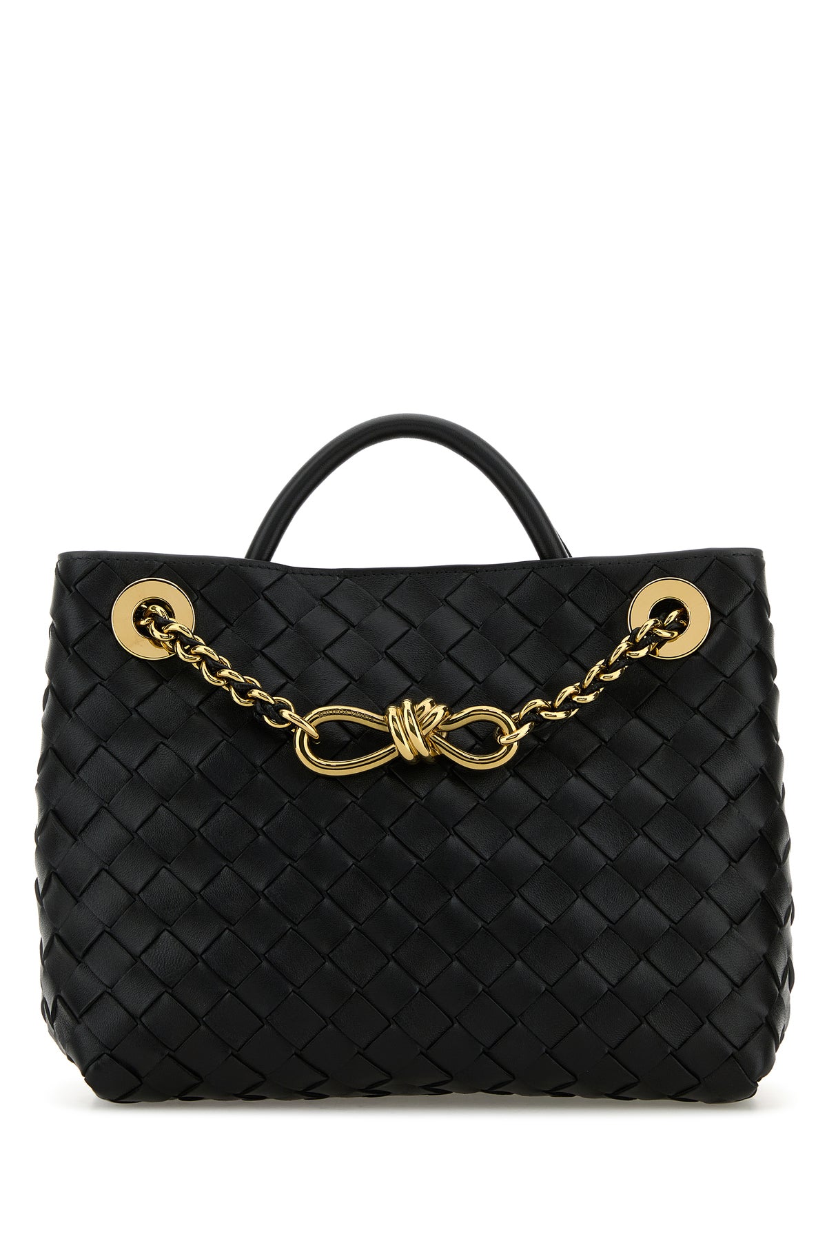 Handbag realized in leather characterized by iconic Intrecciato motif on the entire surface.