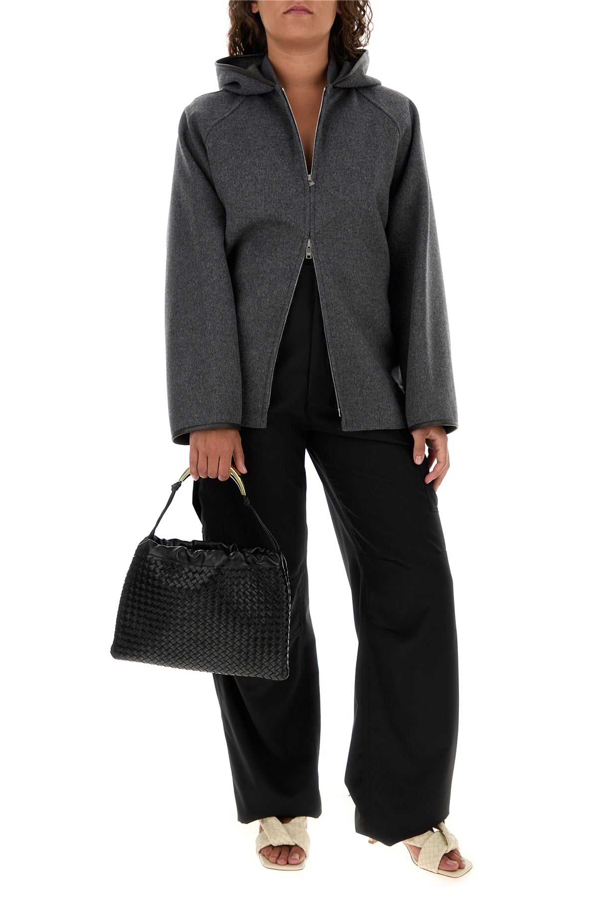Shoulder bag realized in lamb leather characterized by iconic Intrecciato motif on the entire surface.
