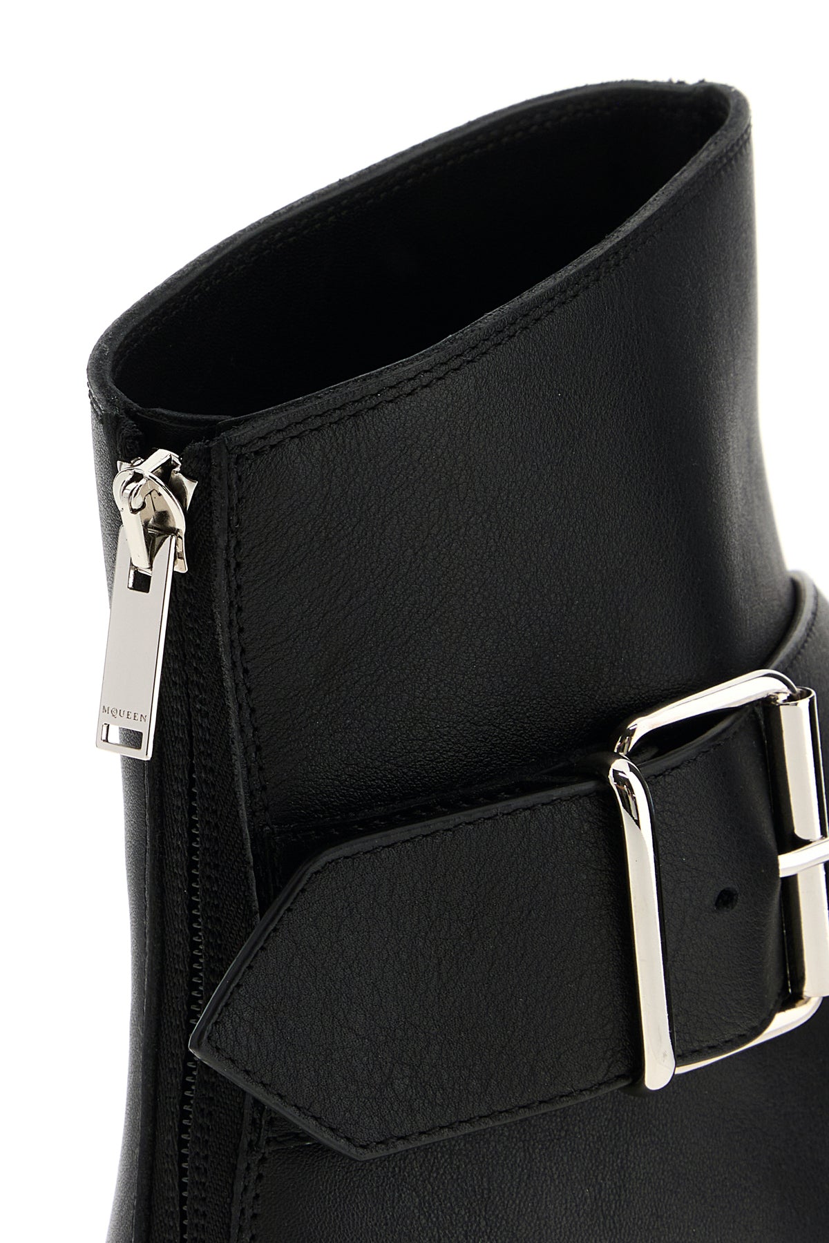 Ankle boots realized in smooth leather enriched by strap on the instep.