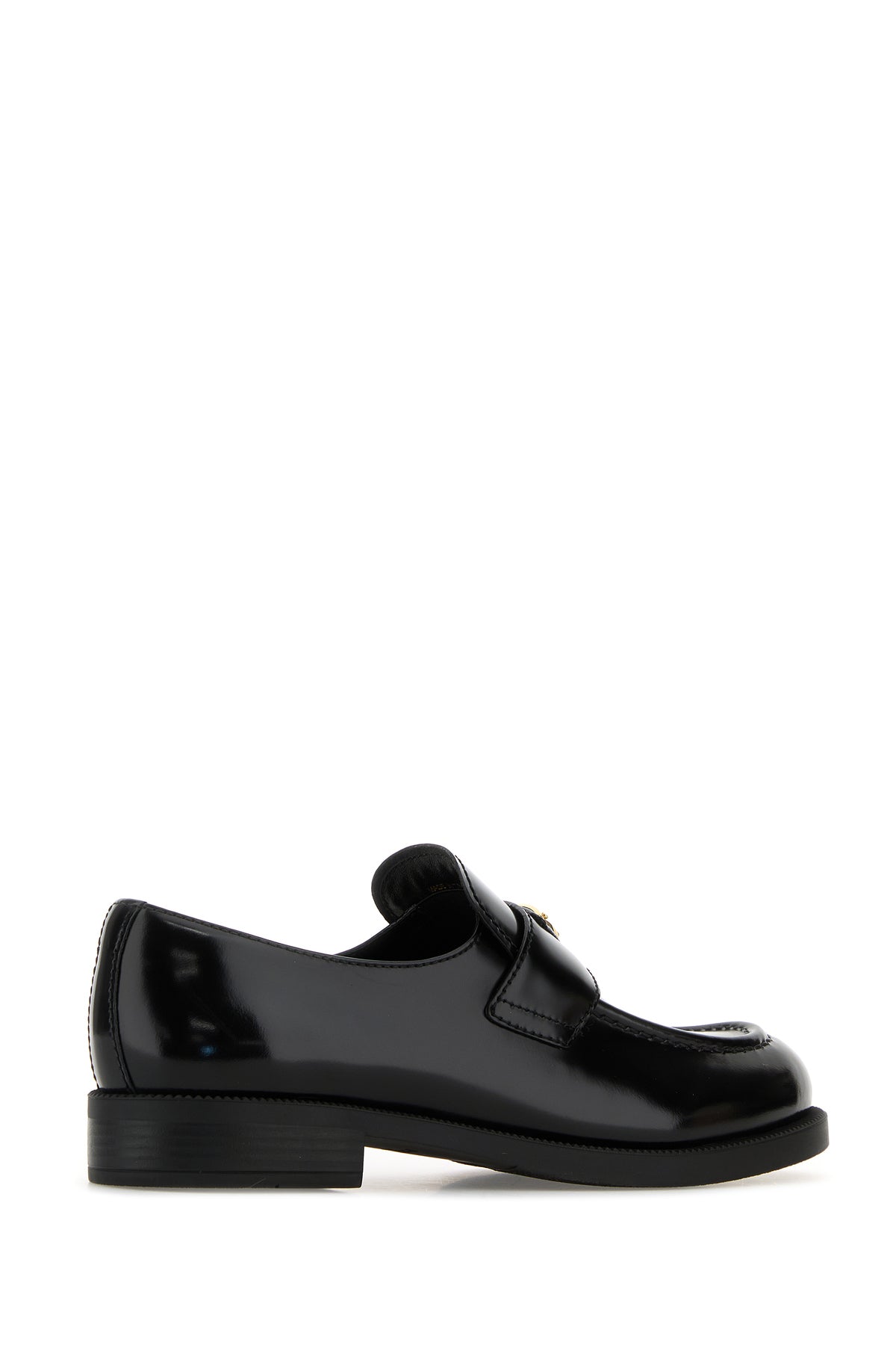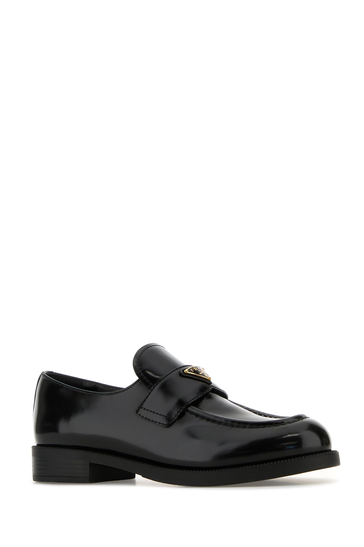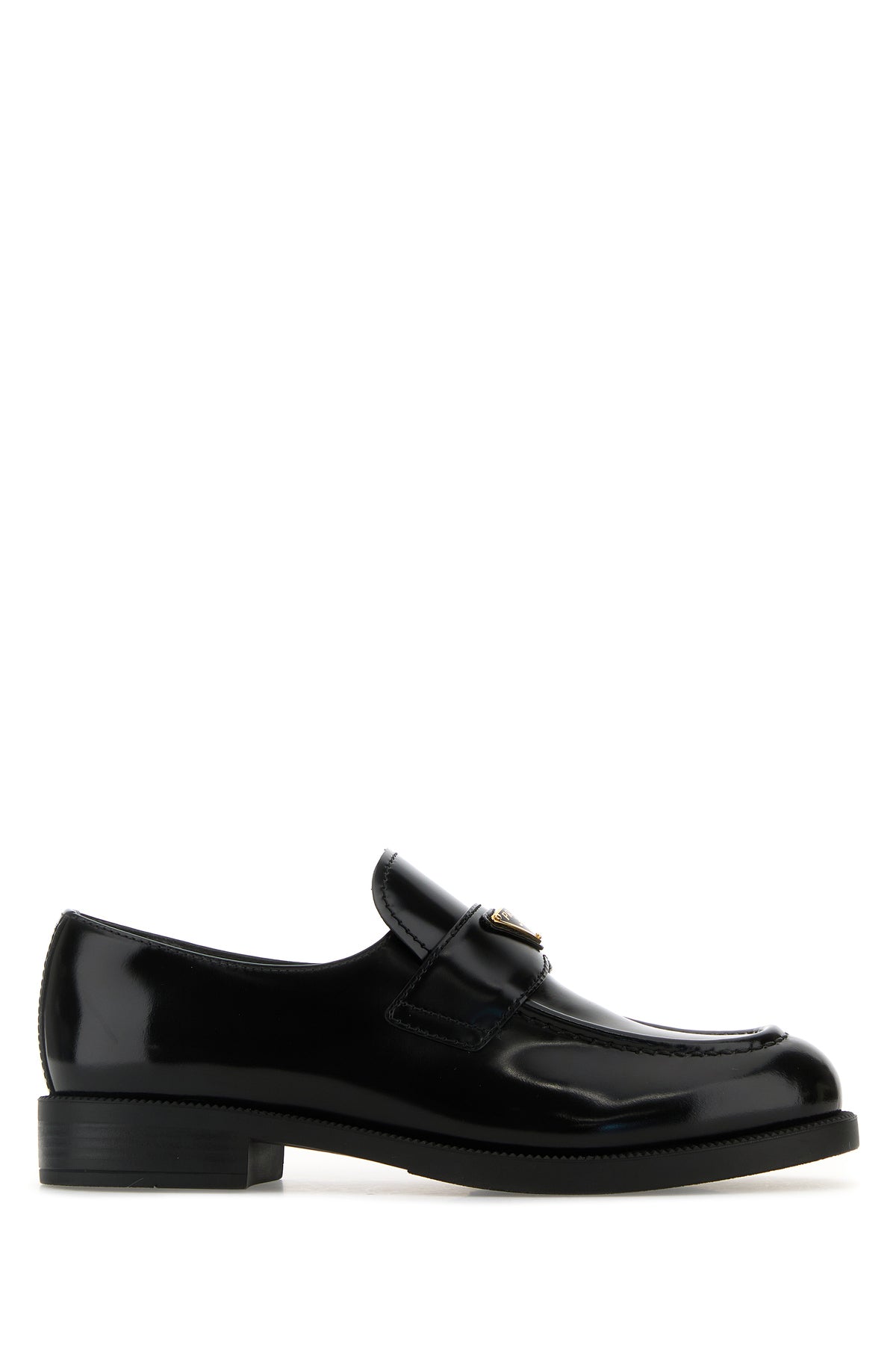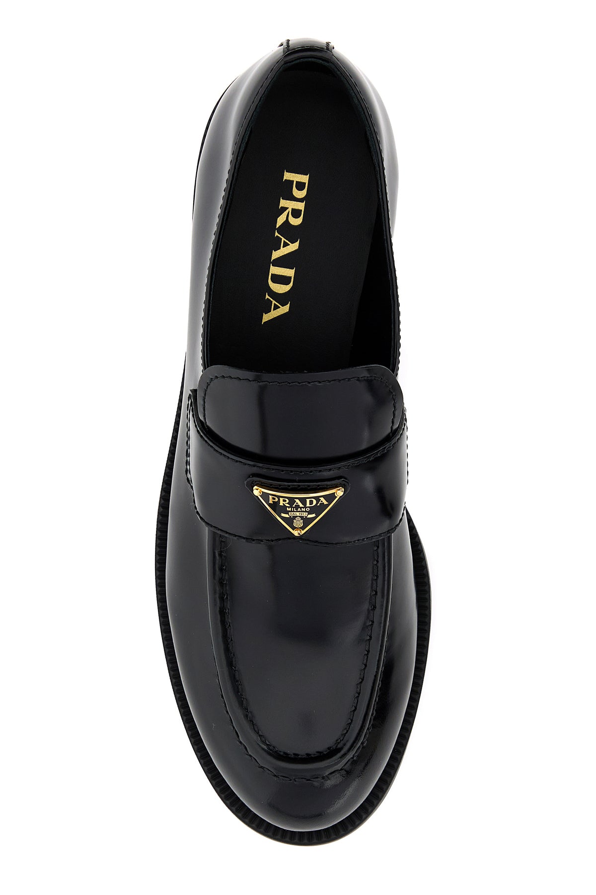 Loafers realized in polished finish leather enriched by iconic logoed meal triangle on the vamp.