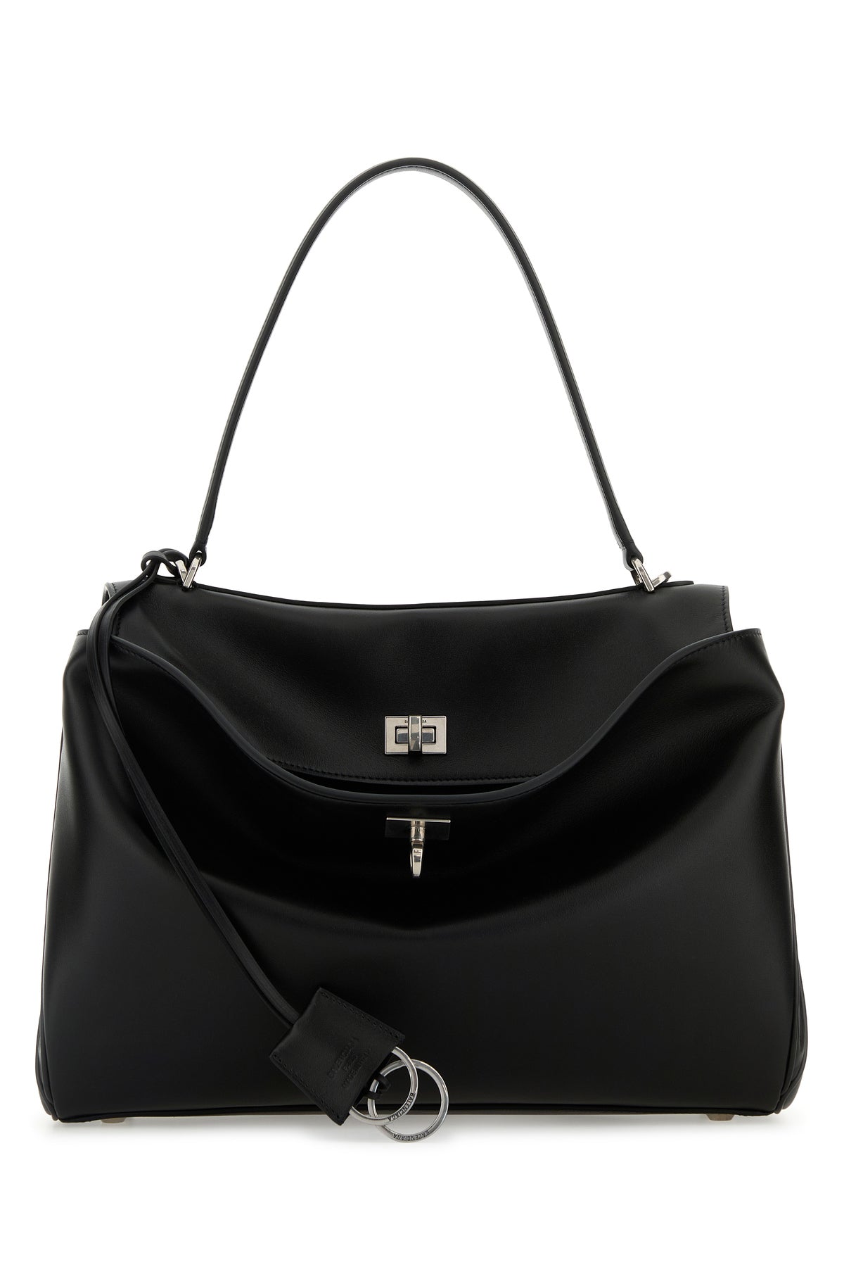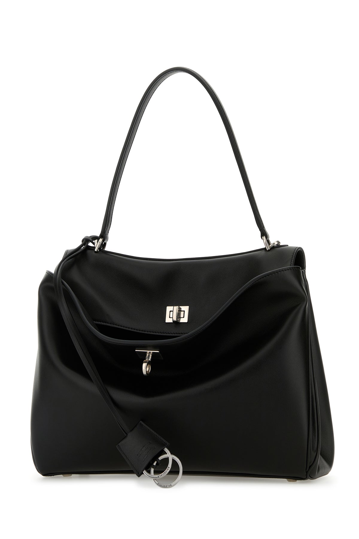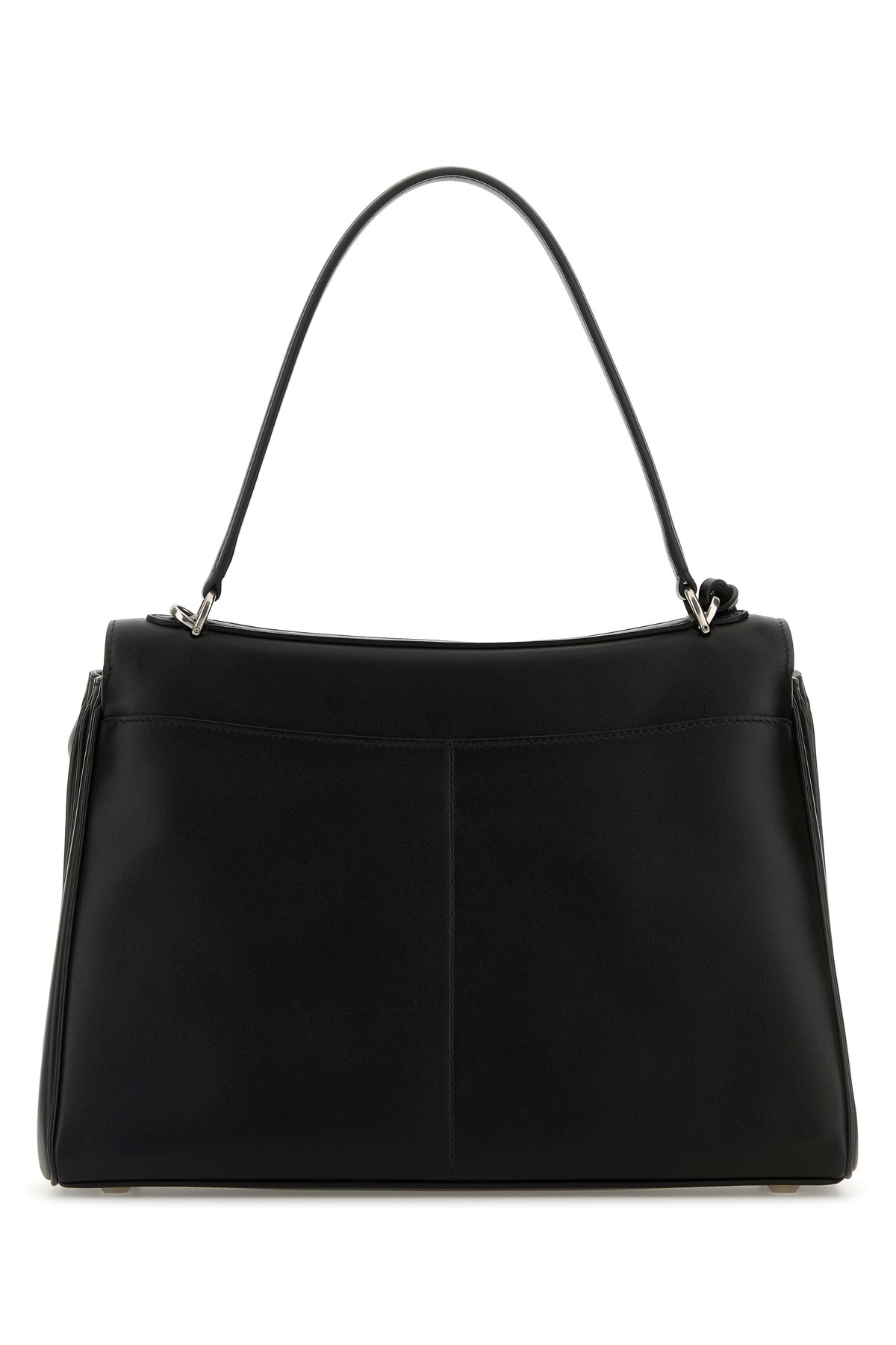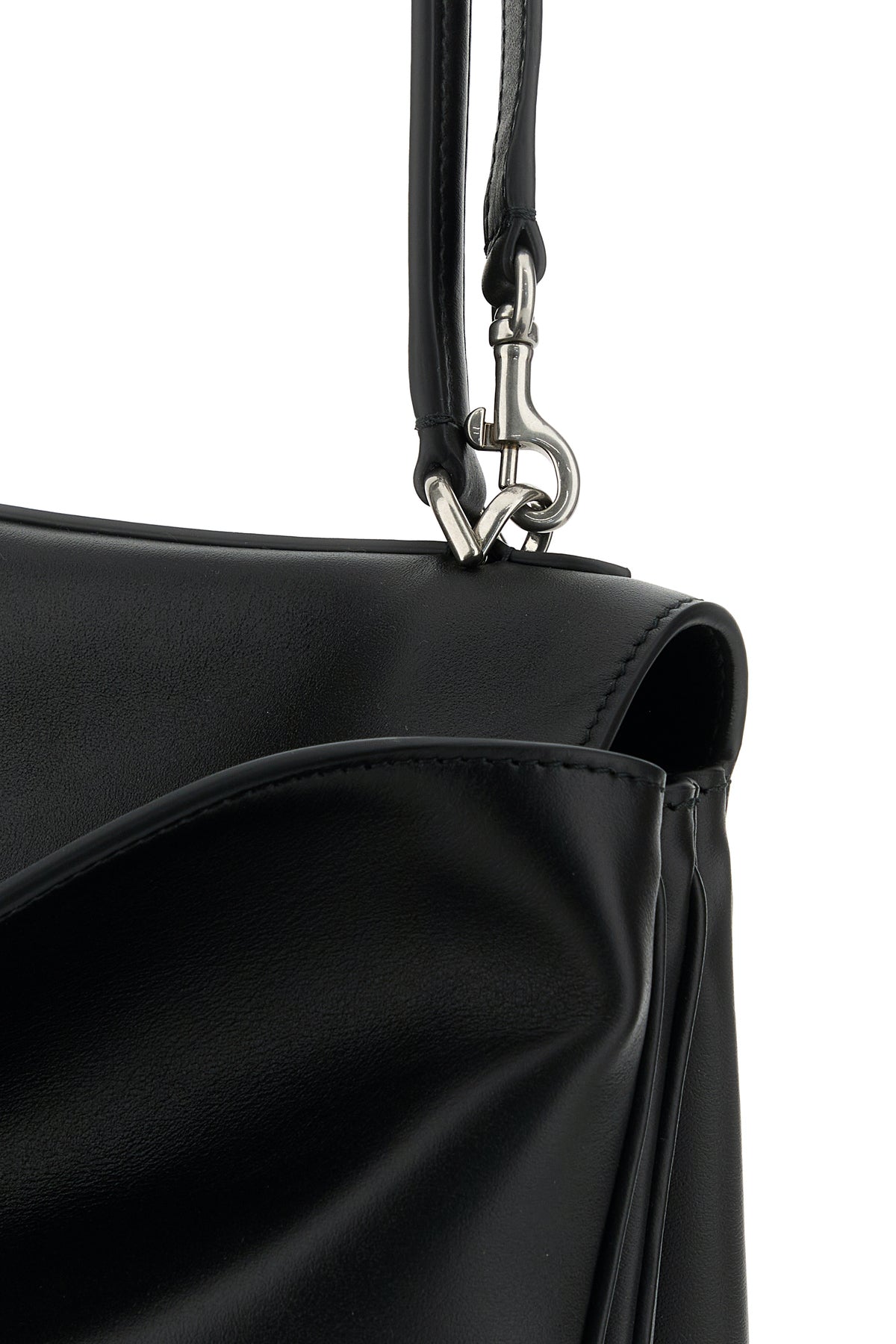 Handbag realized in smooth calf leather enriched by detachable tonal leather accessory with metal rings.