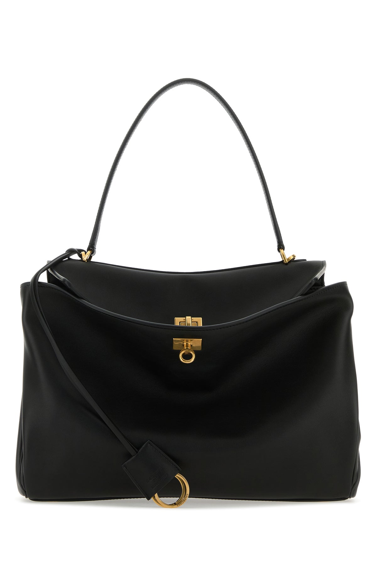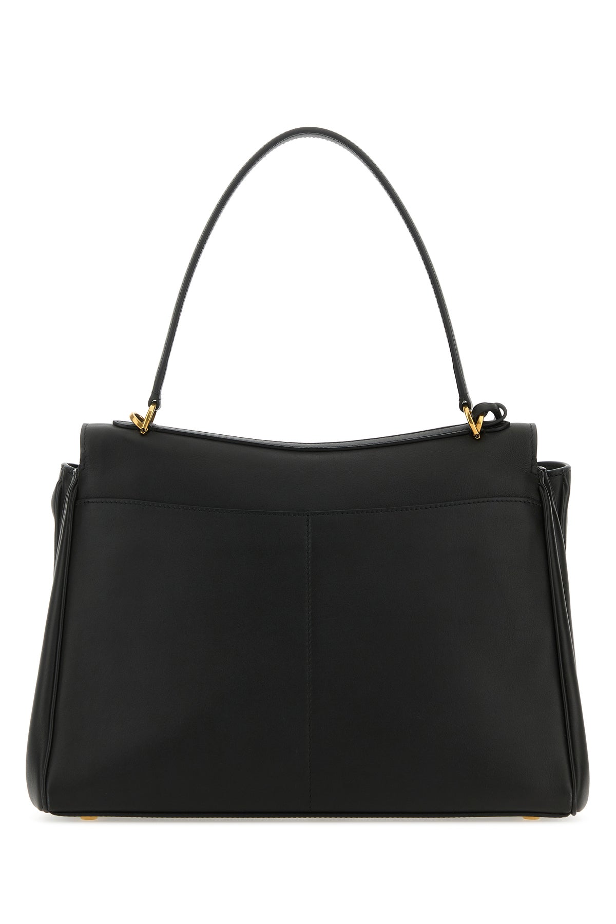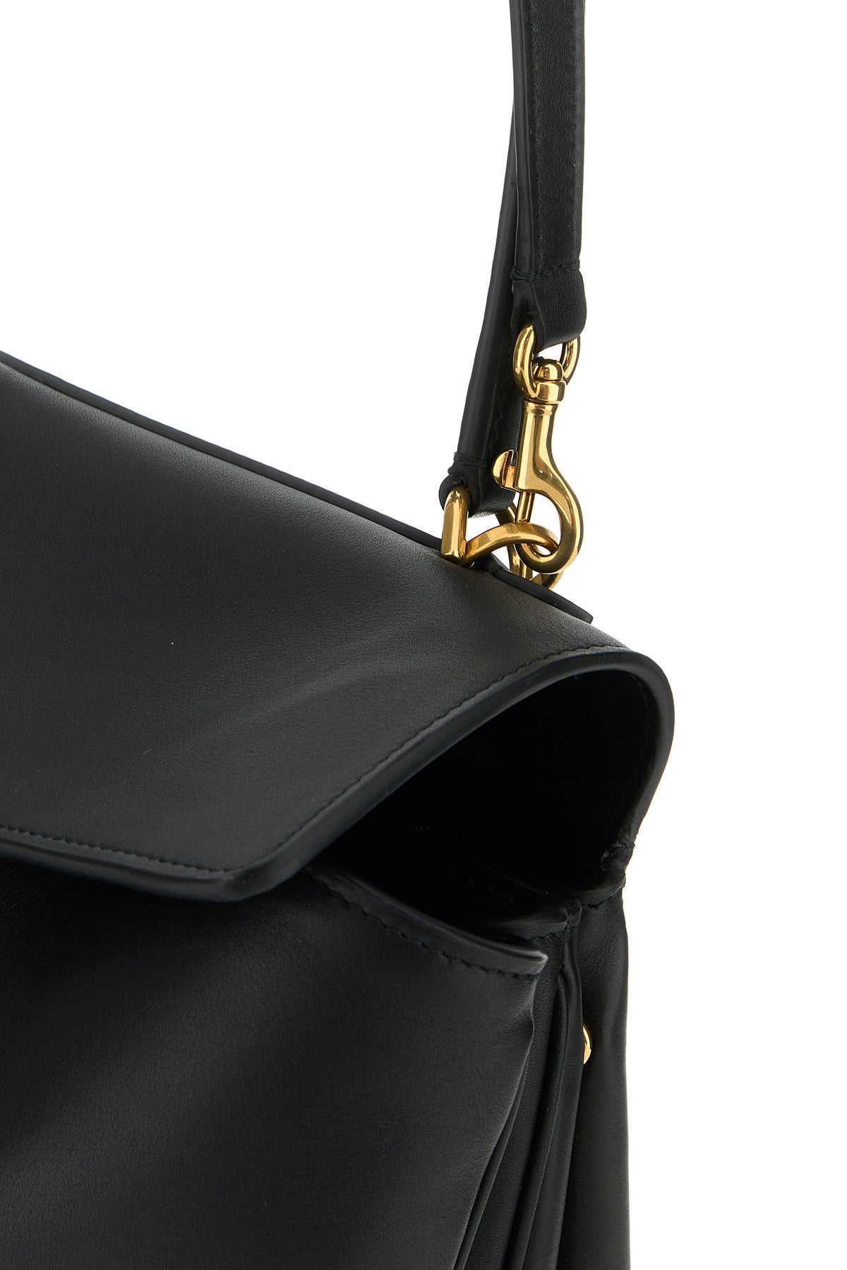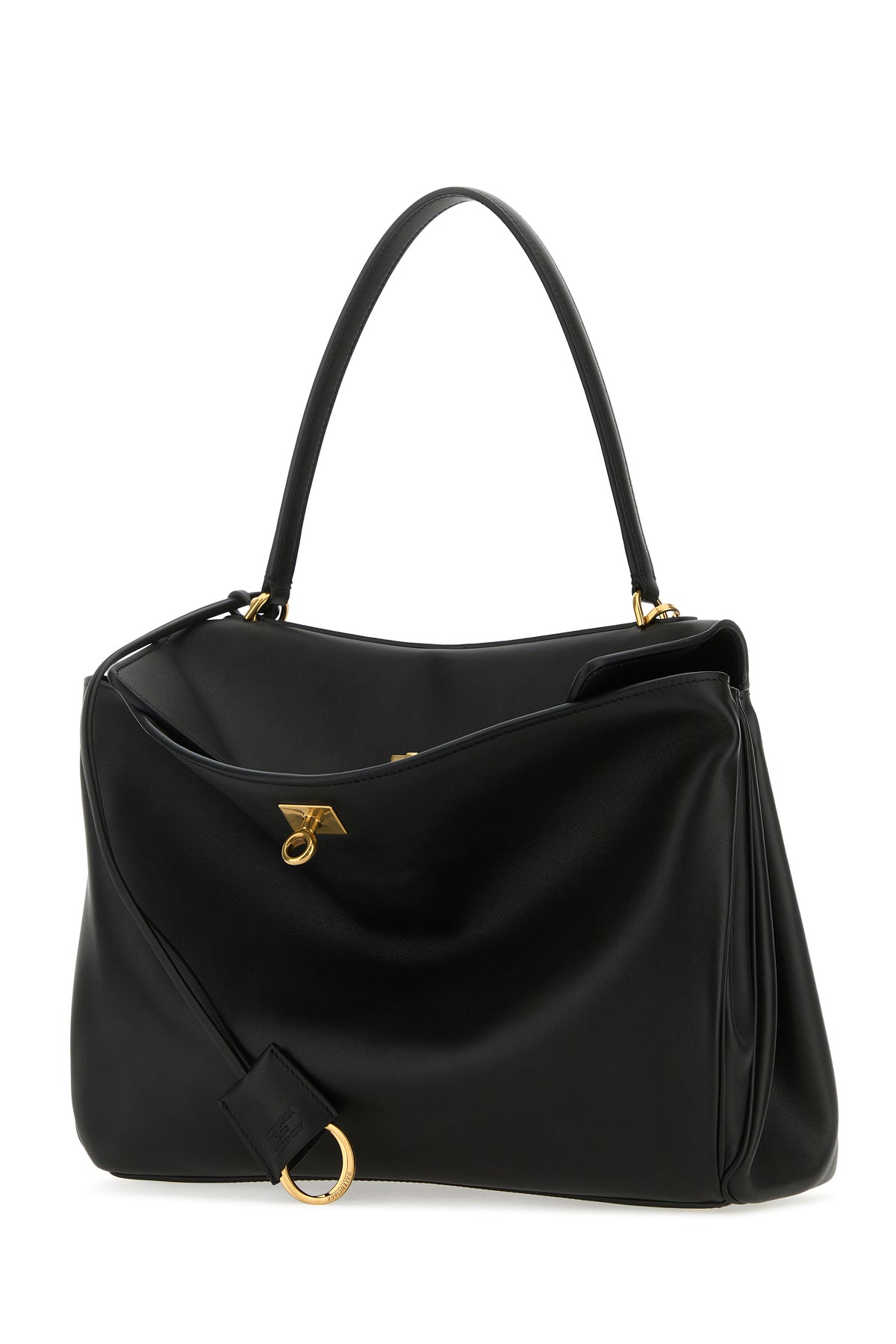 Handbag realized in smooth calf leather enriched by detachable tonal leather accessory with metal rings.