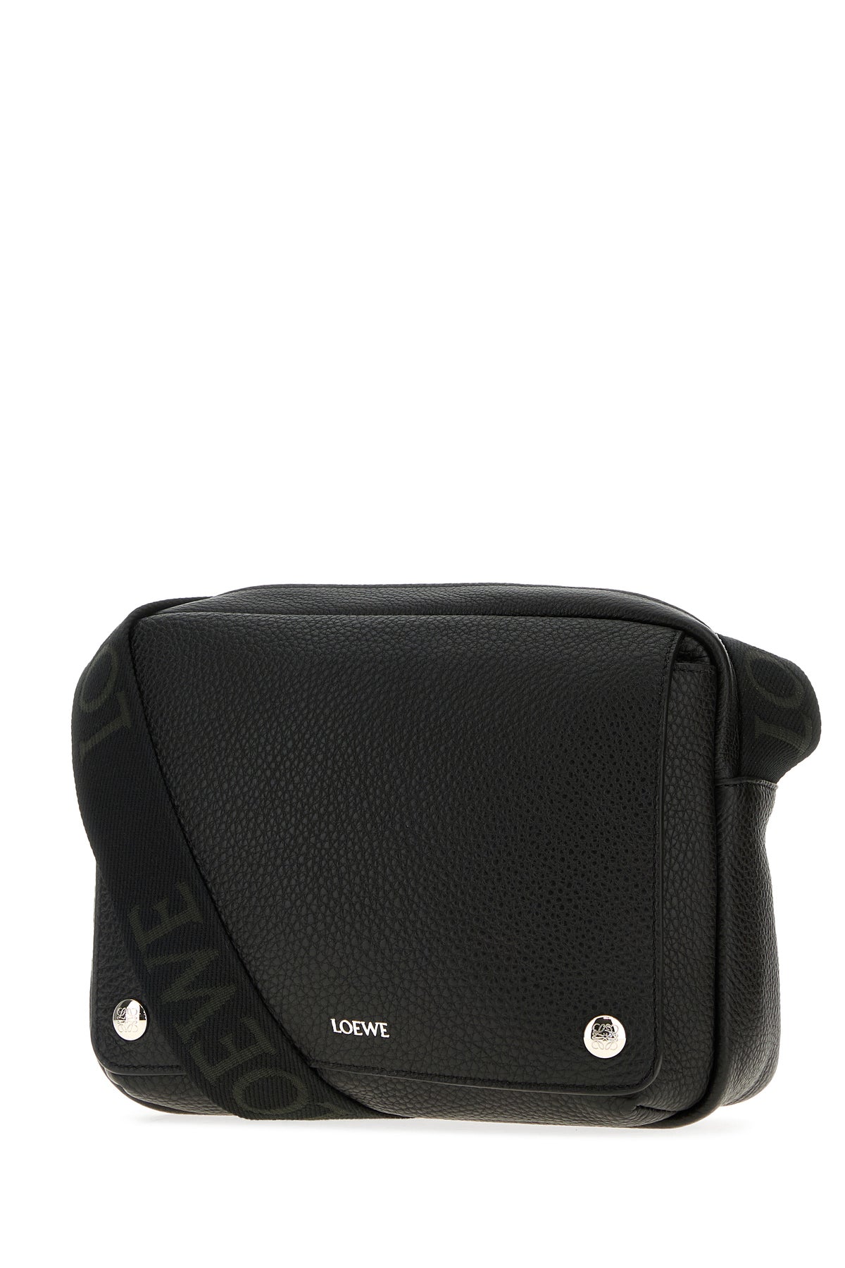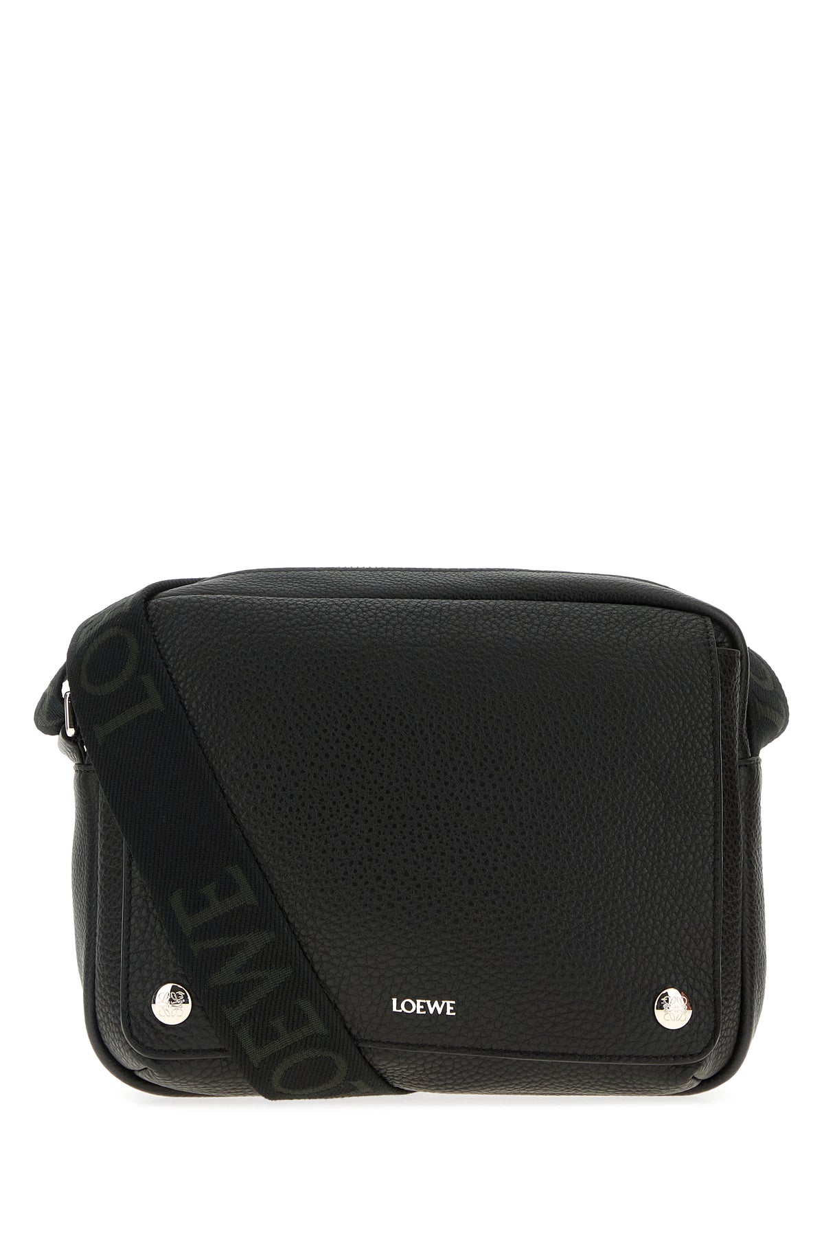 Crossbody bag realized in pebble leather characterized by laminated printed logo at the front.