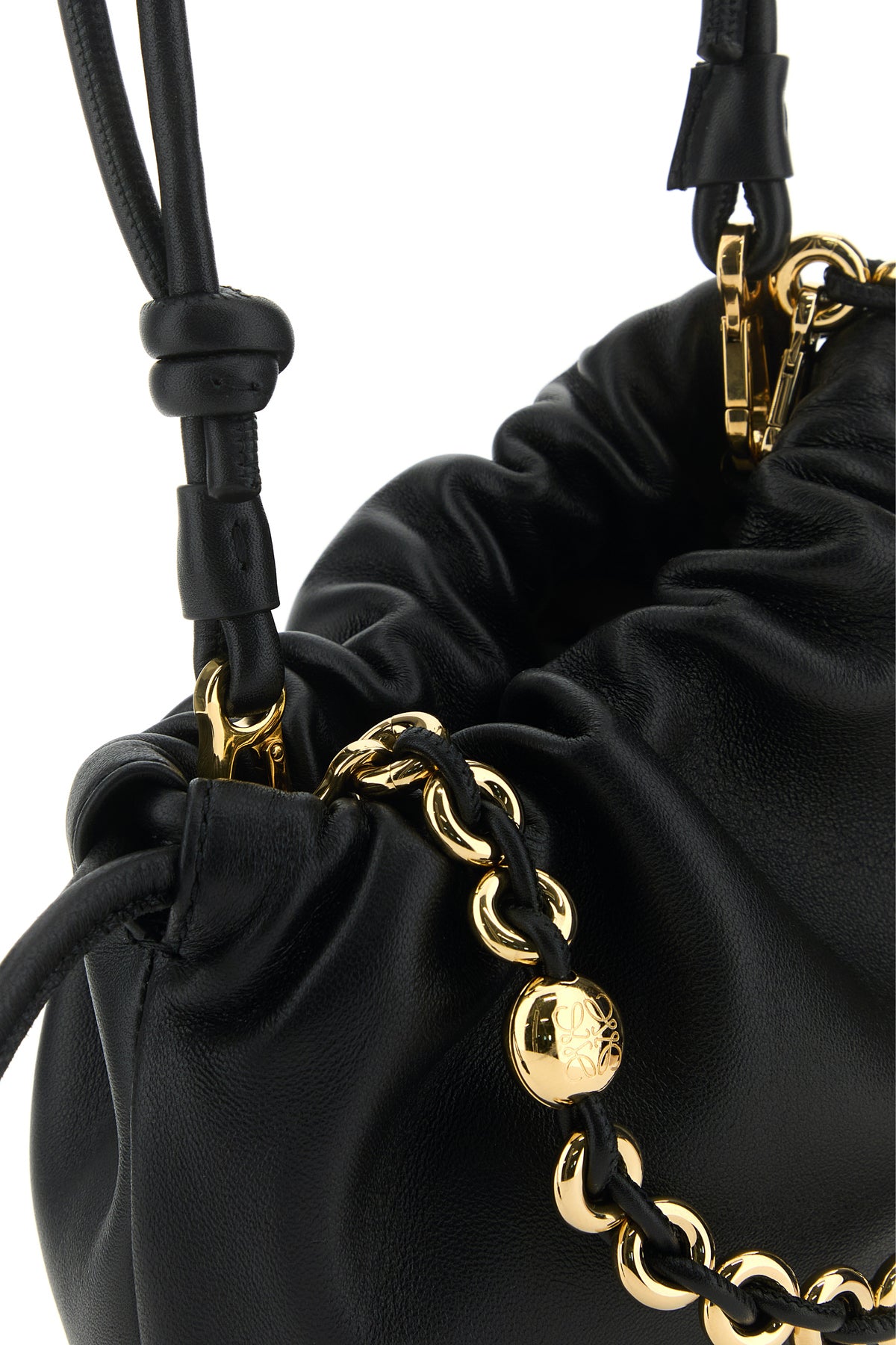 Bucket bag realized in smooth lamb leather characterized by laminated printed logo at the front.