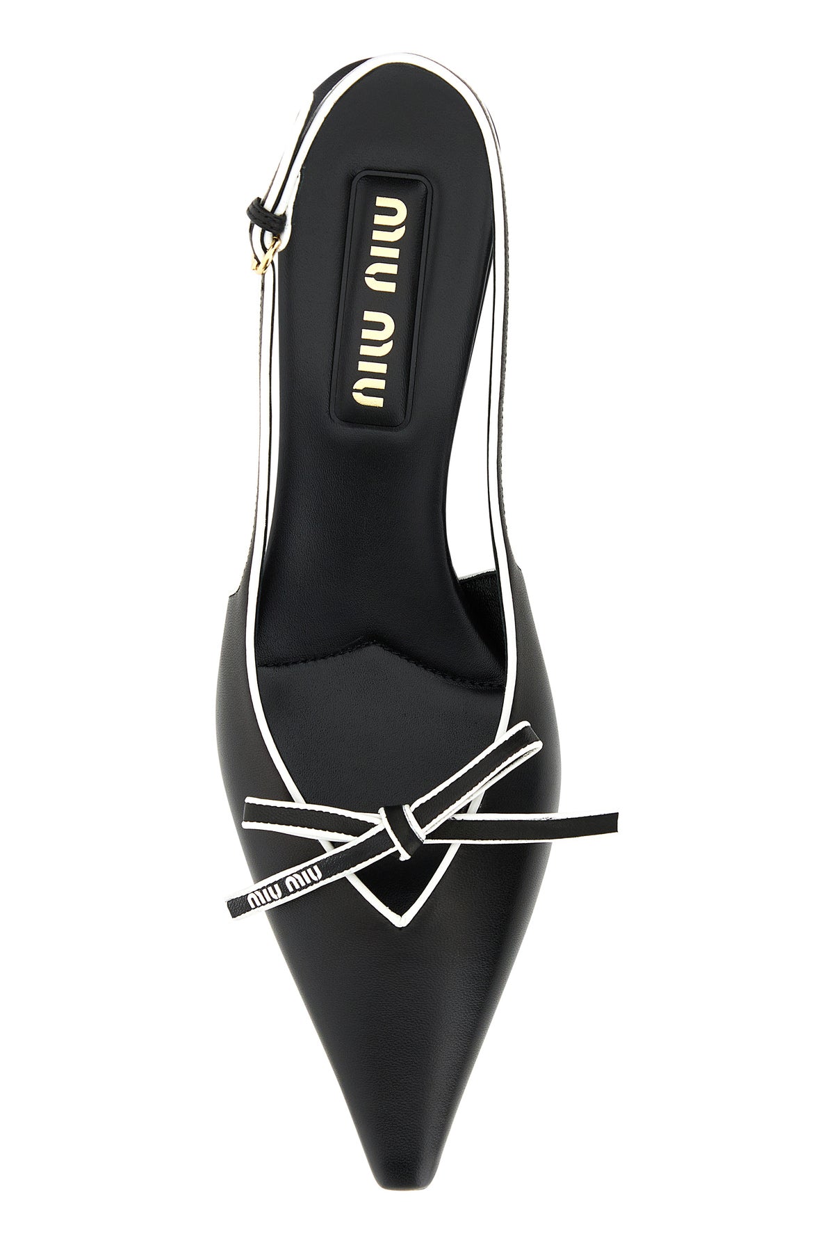 Slingback realized in nappa leather enriched by decorative logoed bow on the instep.