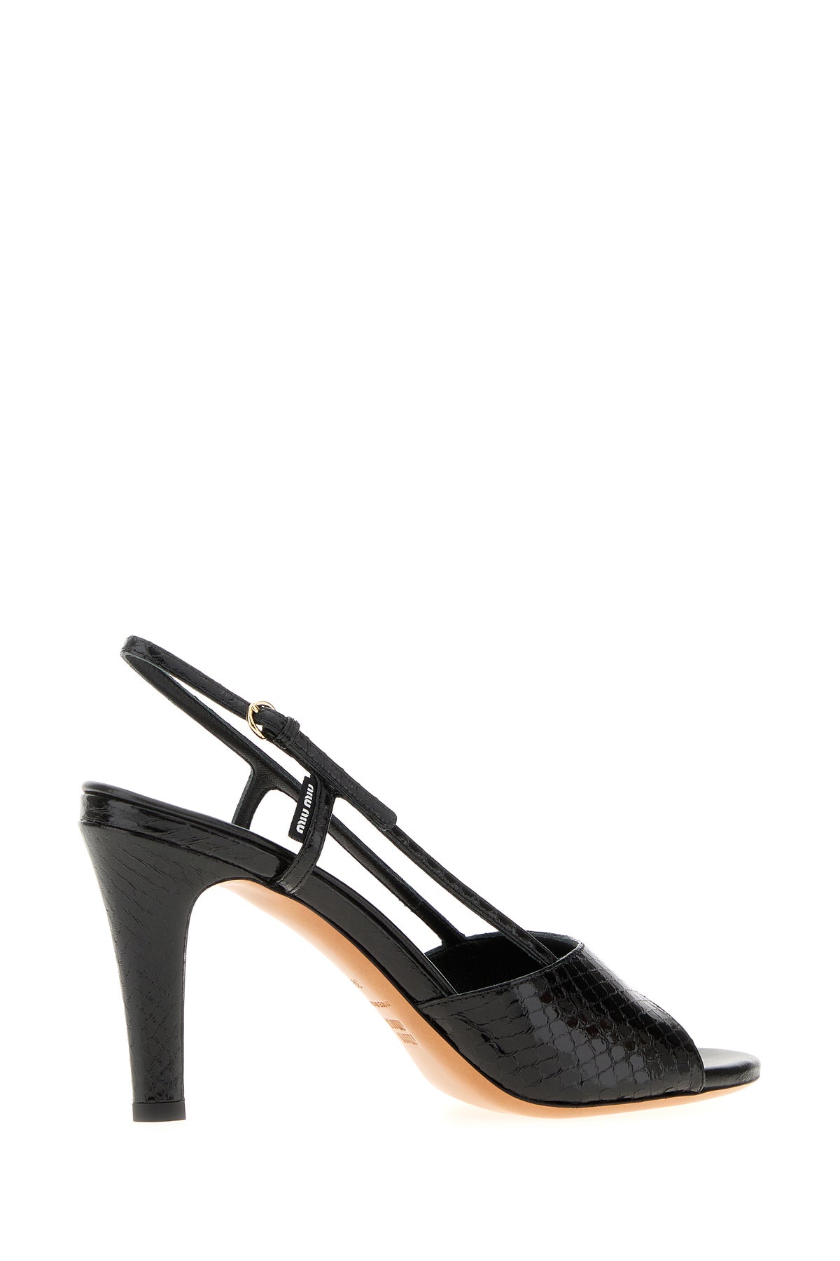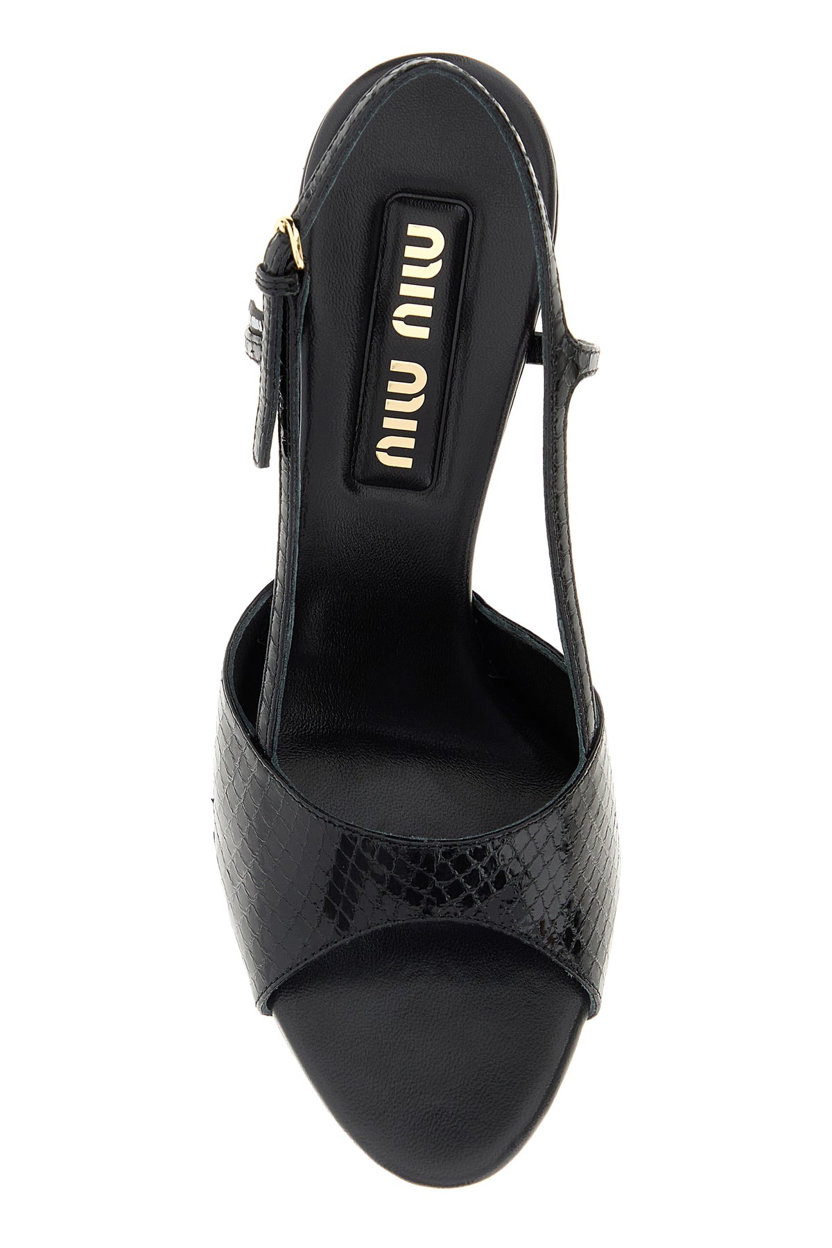 Sandals realized in reptile motif embossed leather.