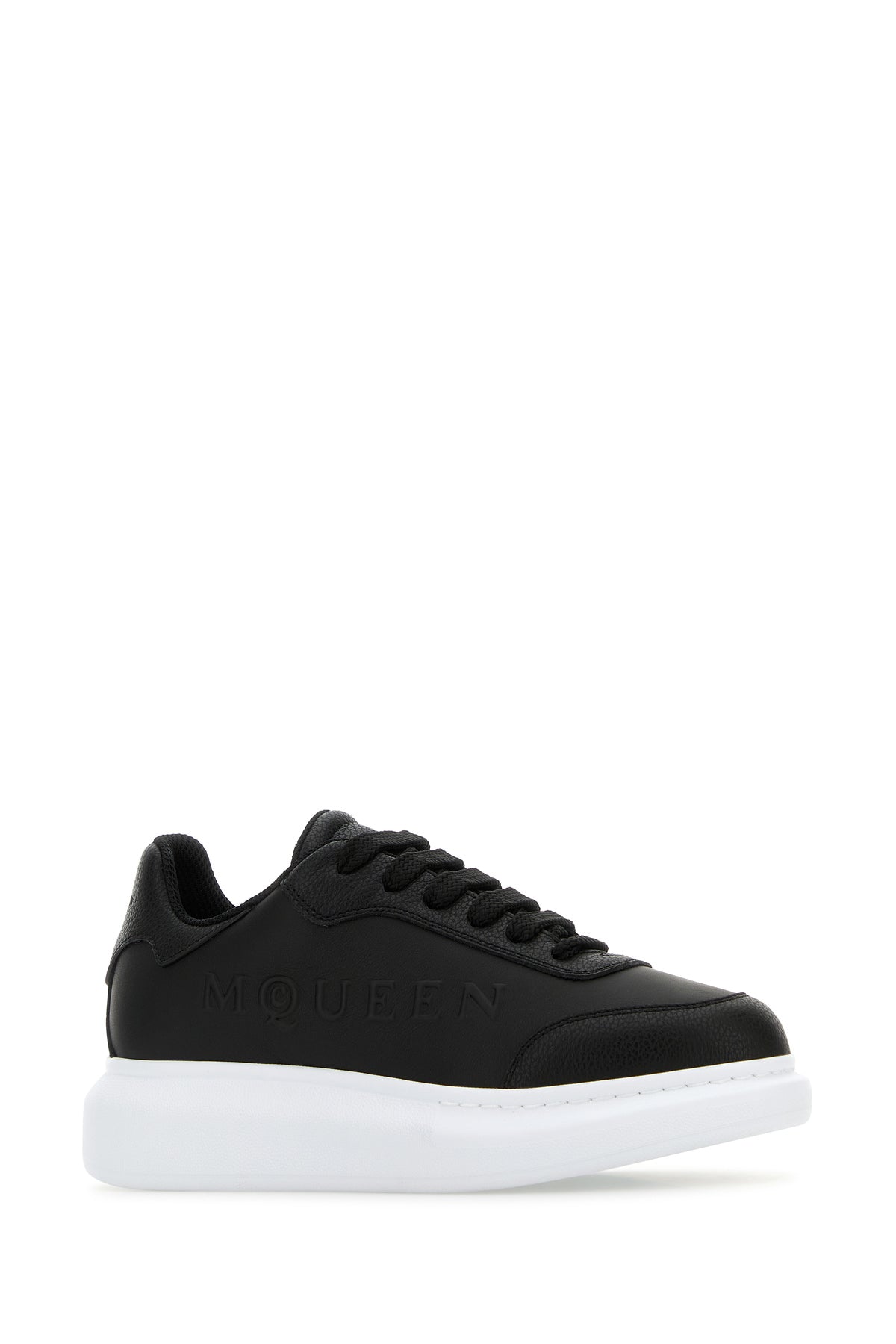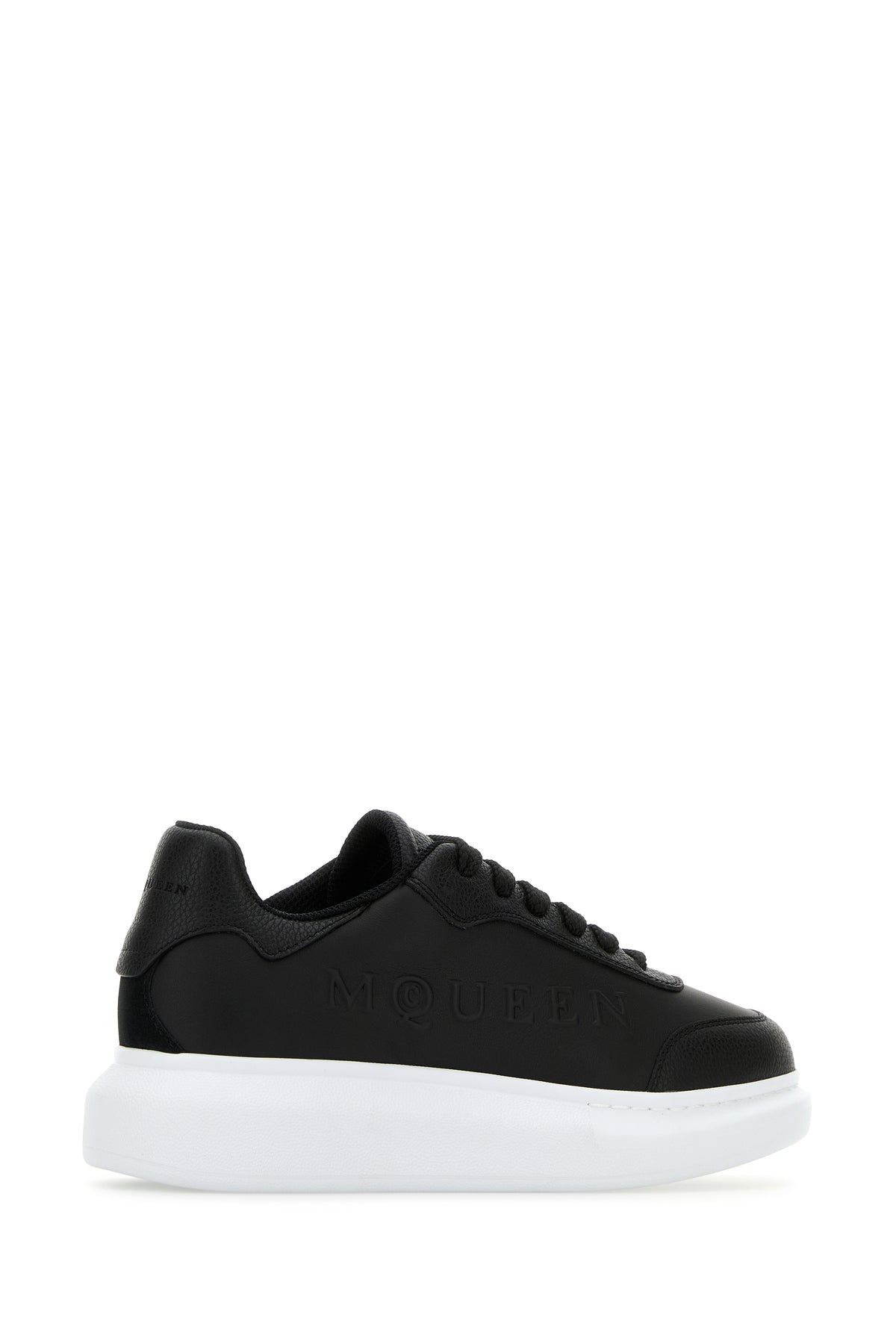 Black leather sneakers with black leather heel