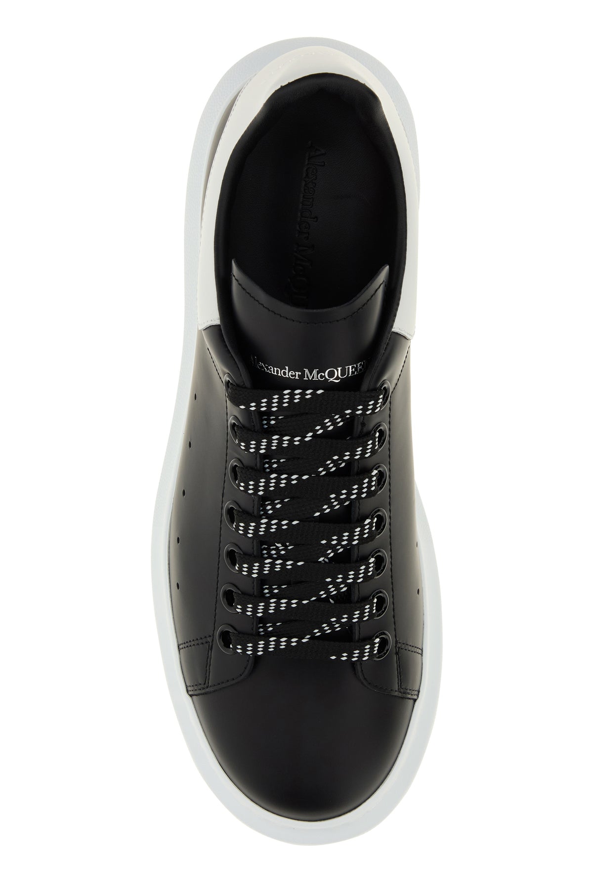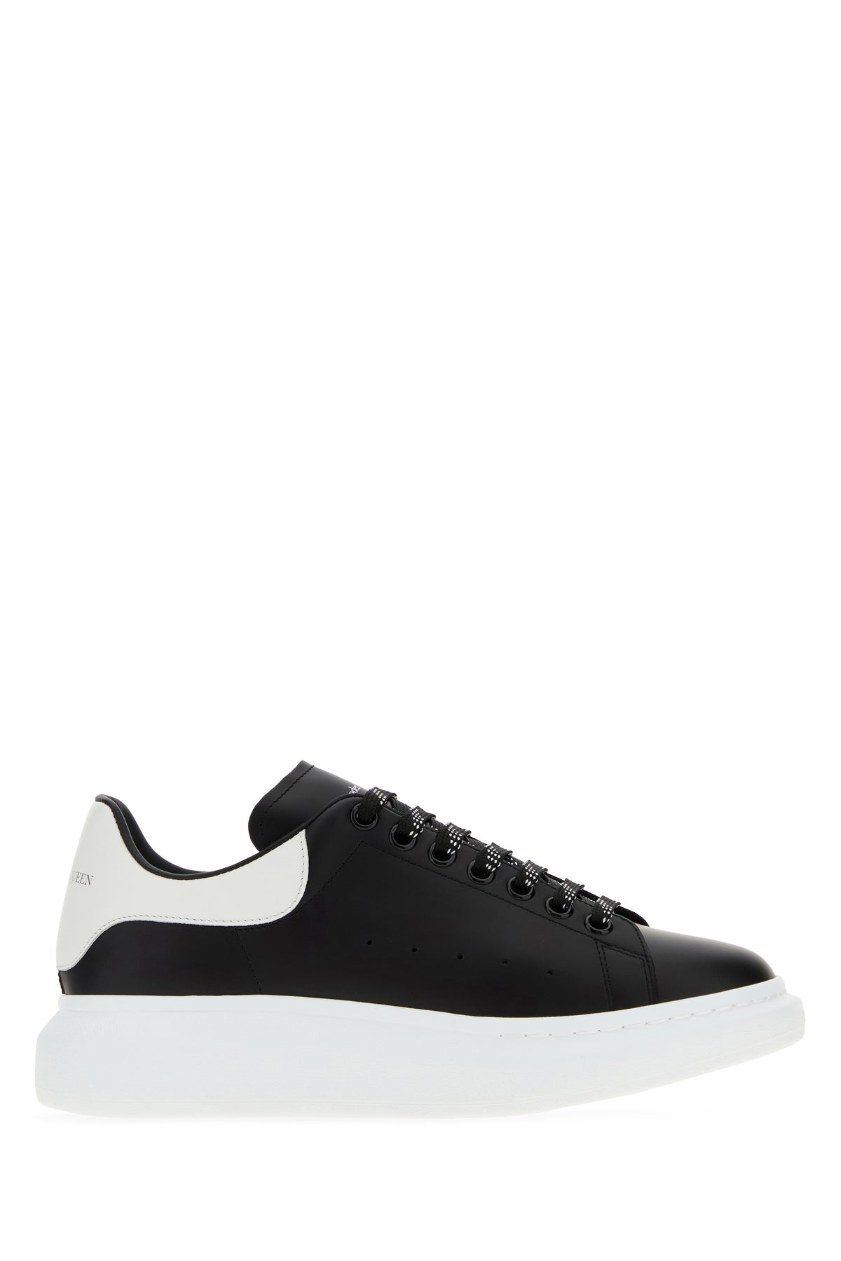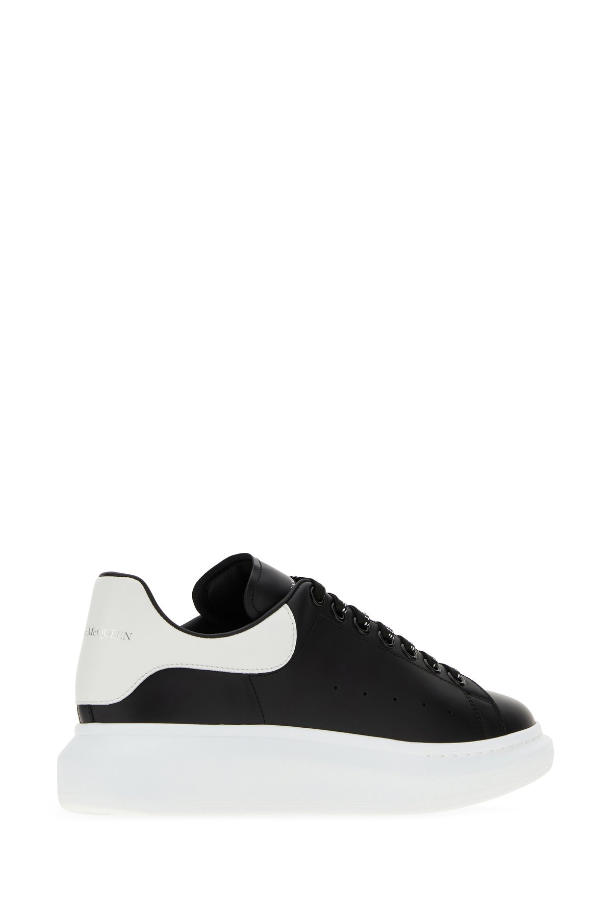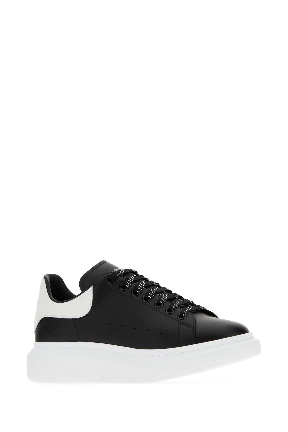 Black leather sneakers with white leather heel