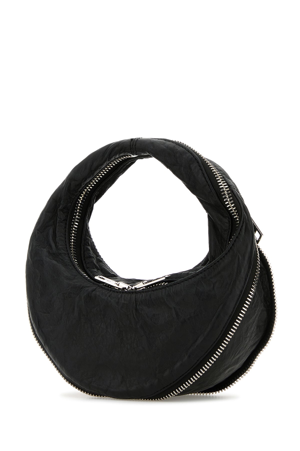 Hand bag realized in creased effect leather characterized by expandable sides by zip.