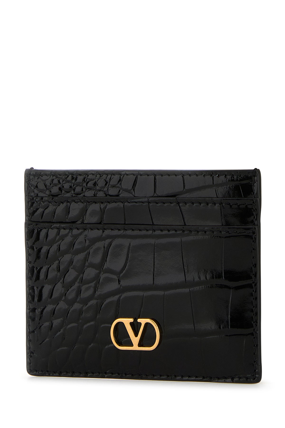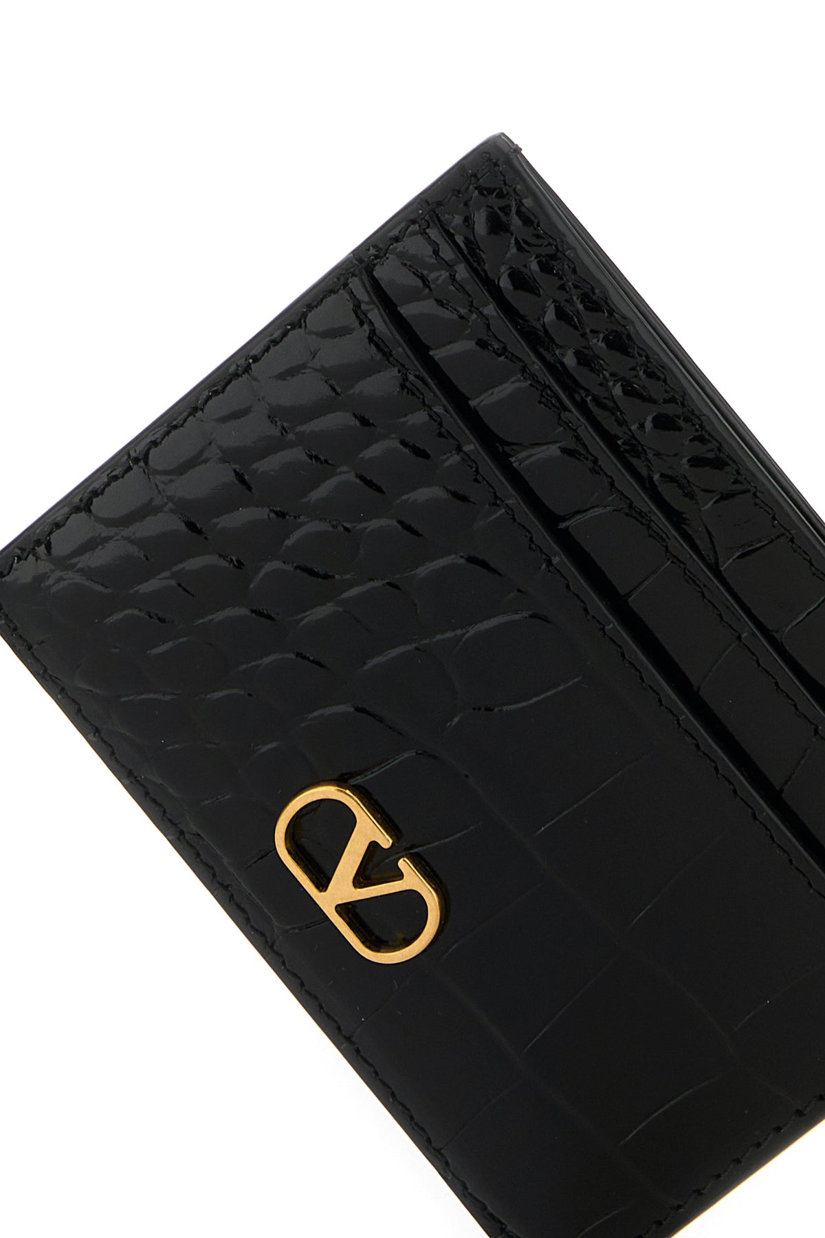 Card holder realized in polished-finish crocodile leather enriched by metal VLogo detail at the front.