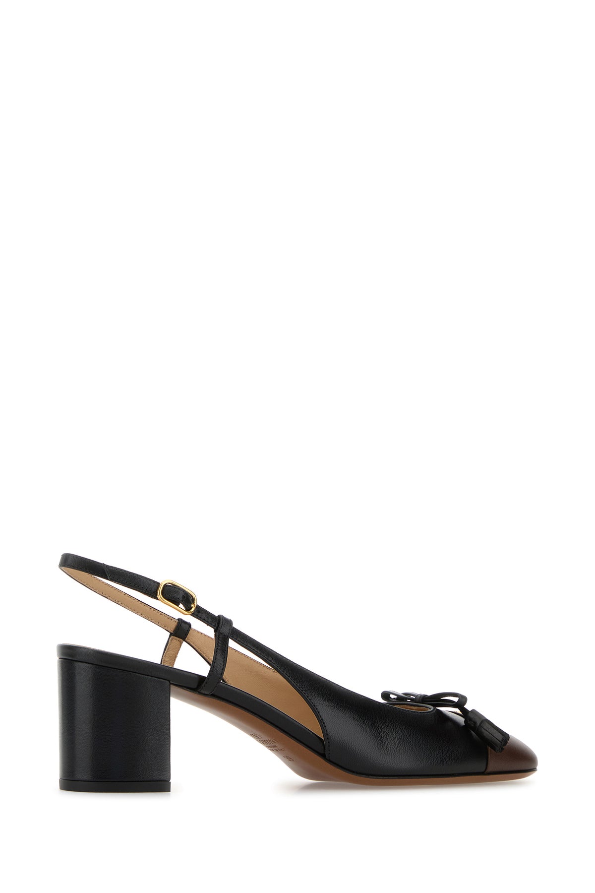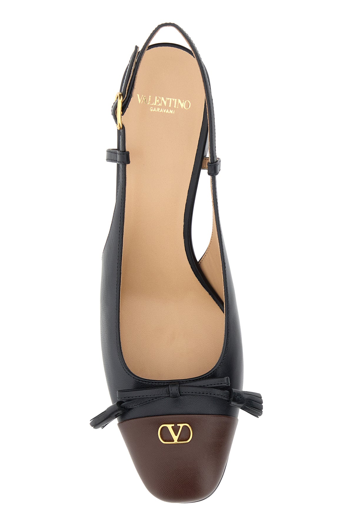 Slingback realized in leather enrich day VLogo Signature metal detail on the contrasting toe.