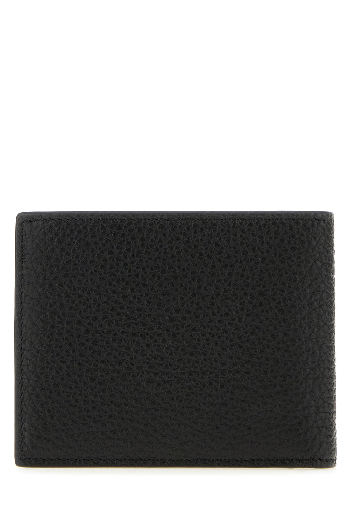 Wallet realized in pebble leather enriched by Enameled Logo metal detail at the front.