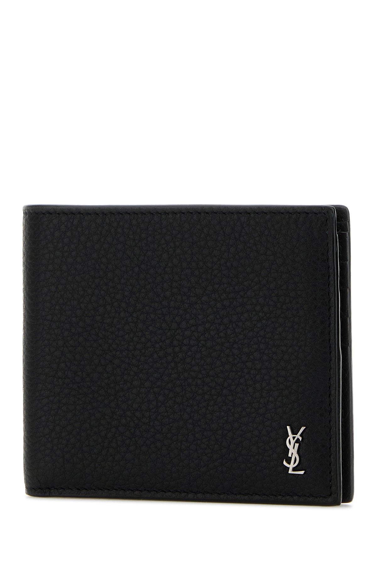 Wallet realized in pebble leather enriched by iconic monogram metal detail at the front.