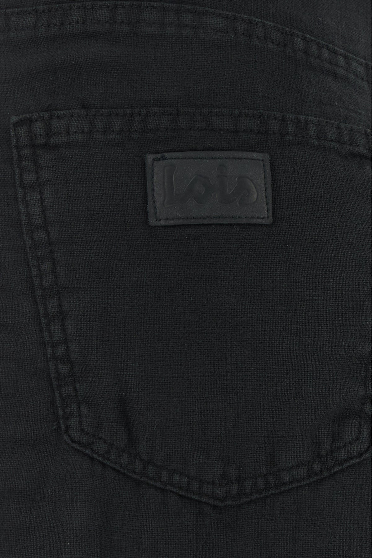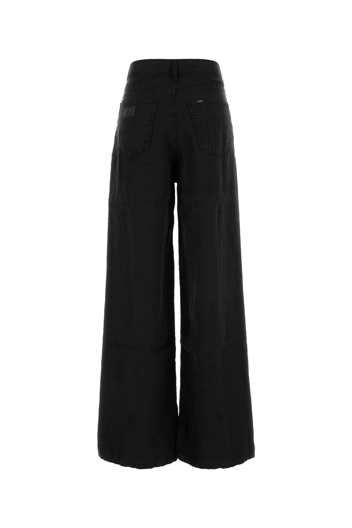 Wide-leg pant realized in pure linen enriched by tonal logoed patch at the front and logoed patches at the back.