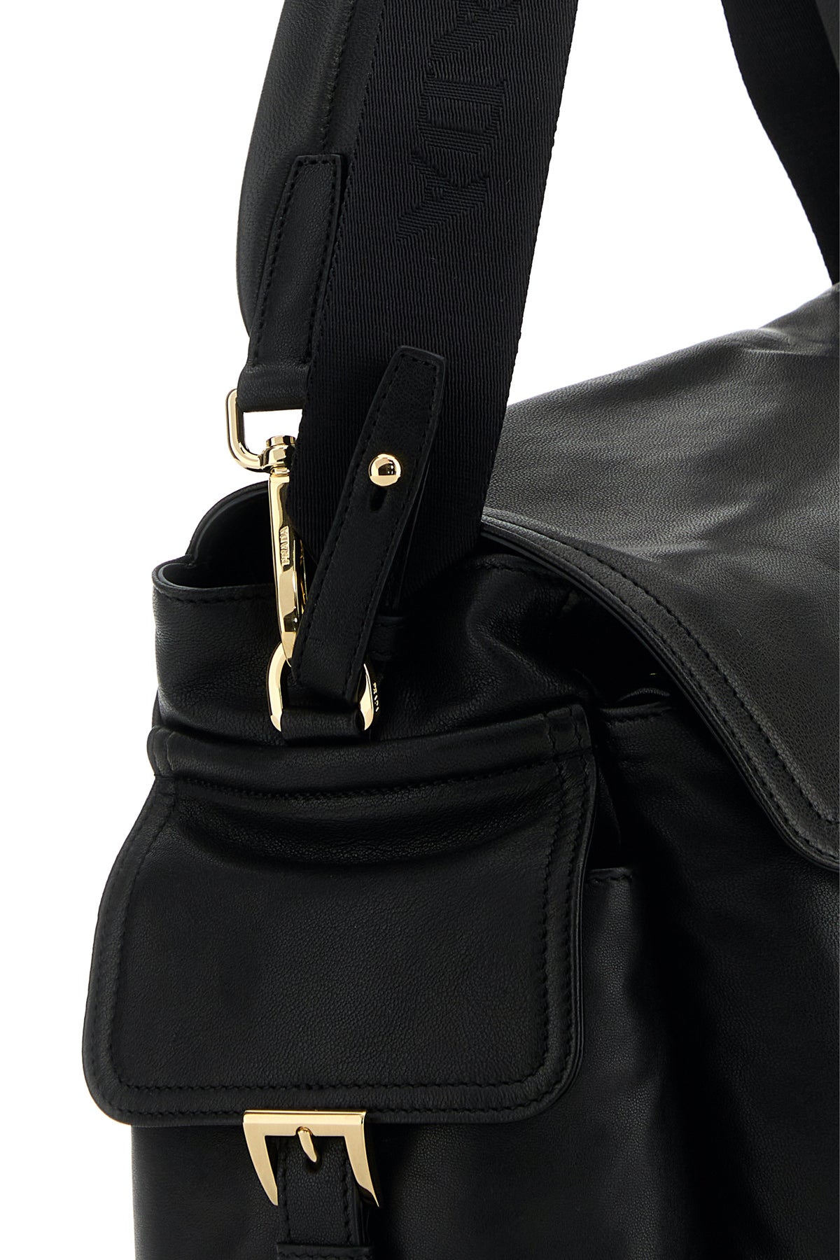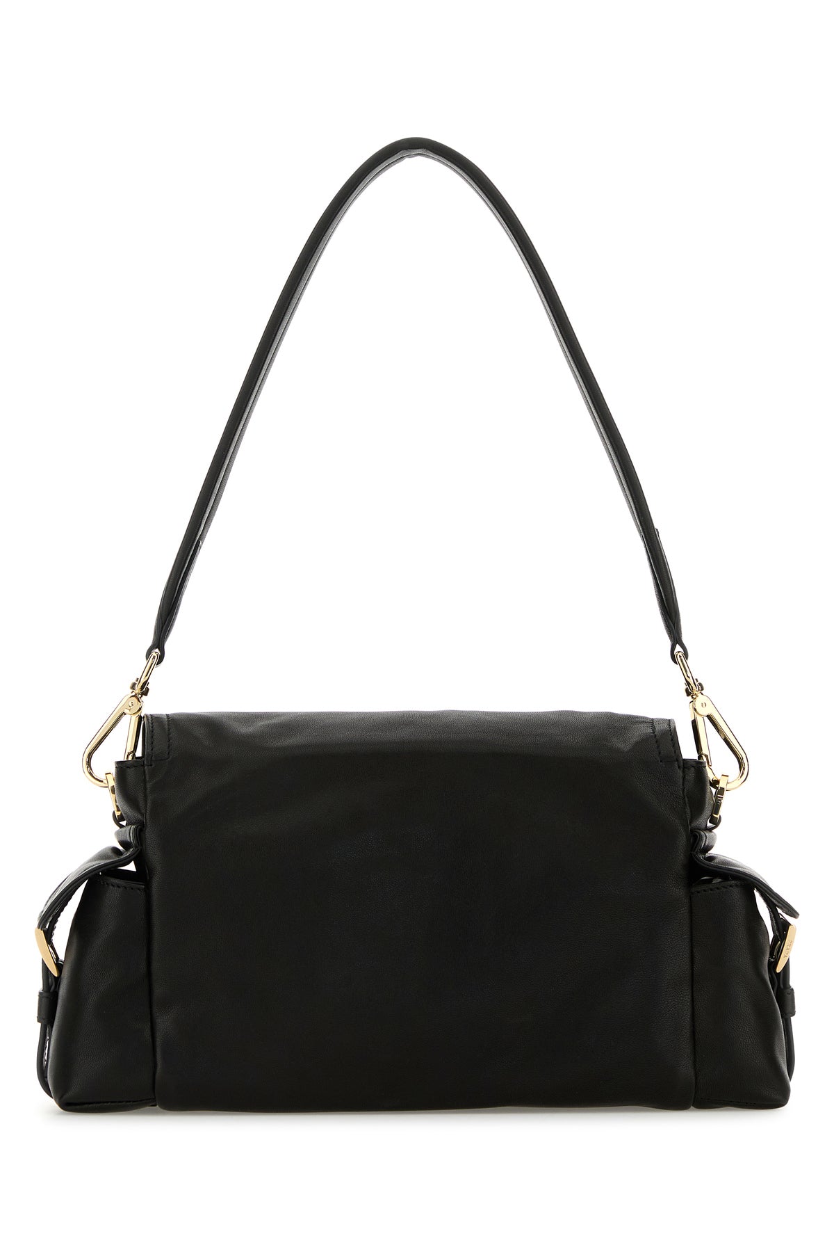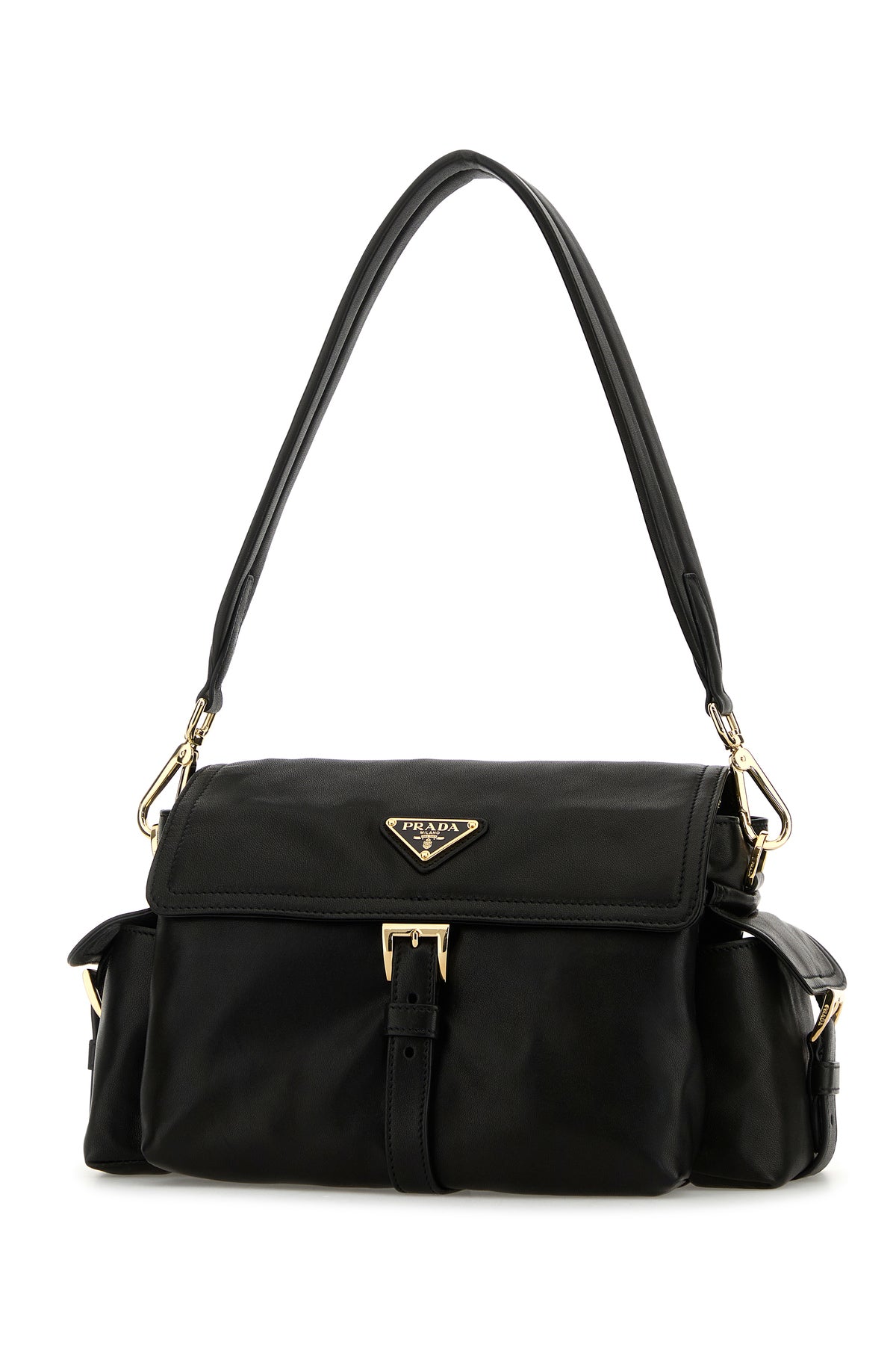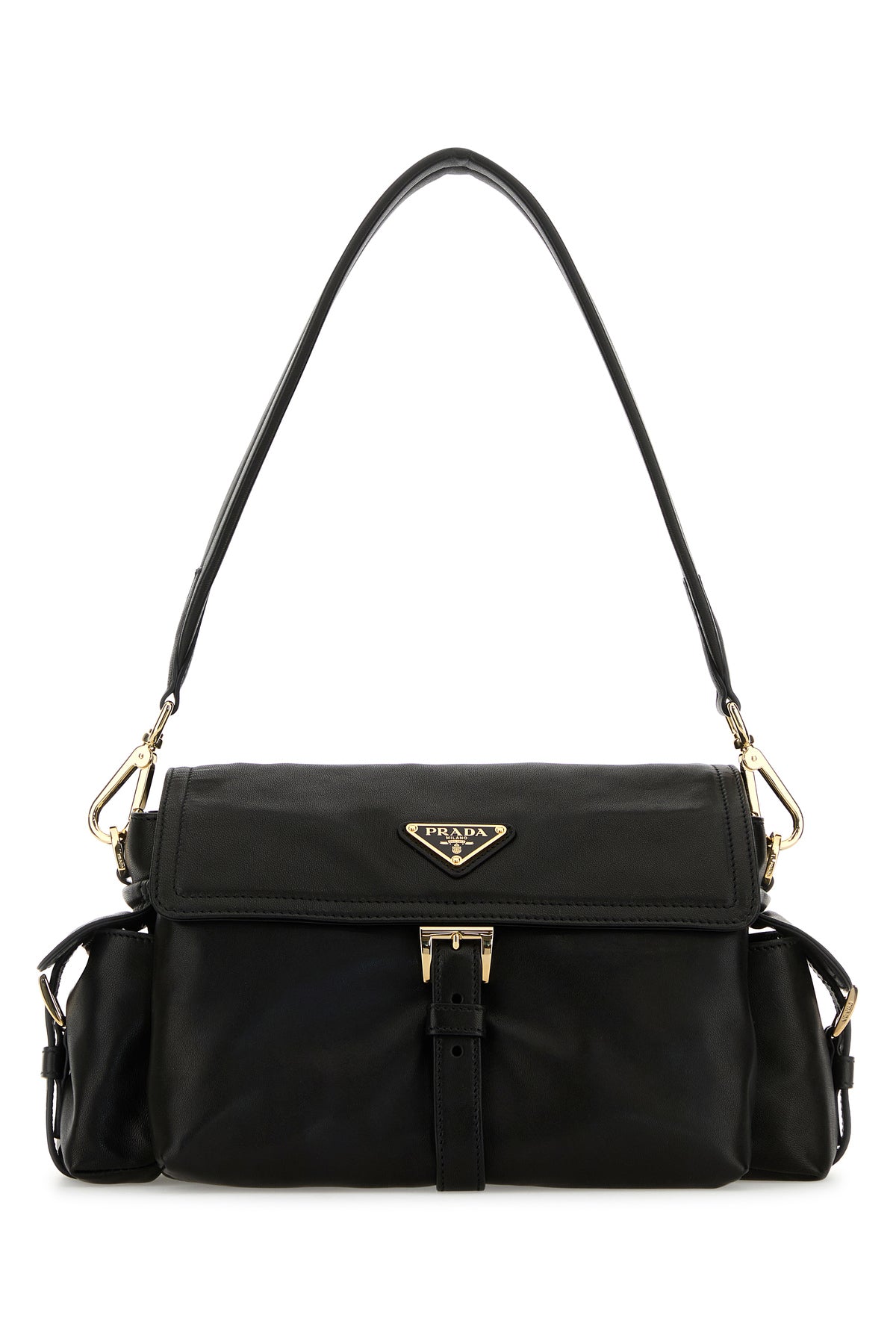 Shoulder bag realized in slightly pebble nappa leather enriched by iconic logoed metal triangle at the front.