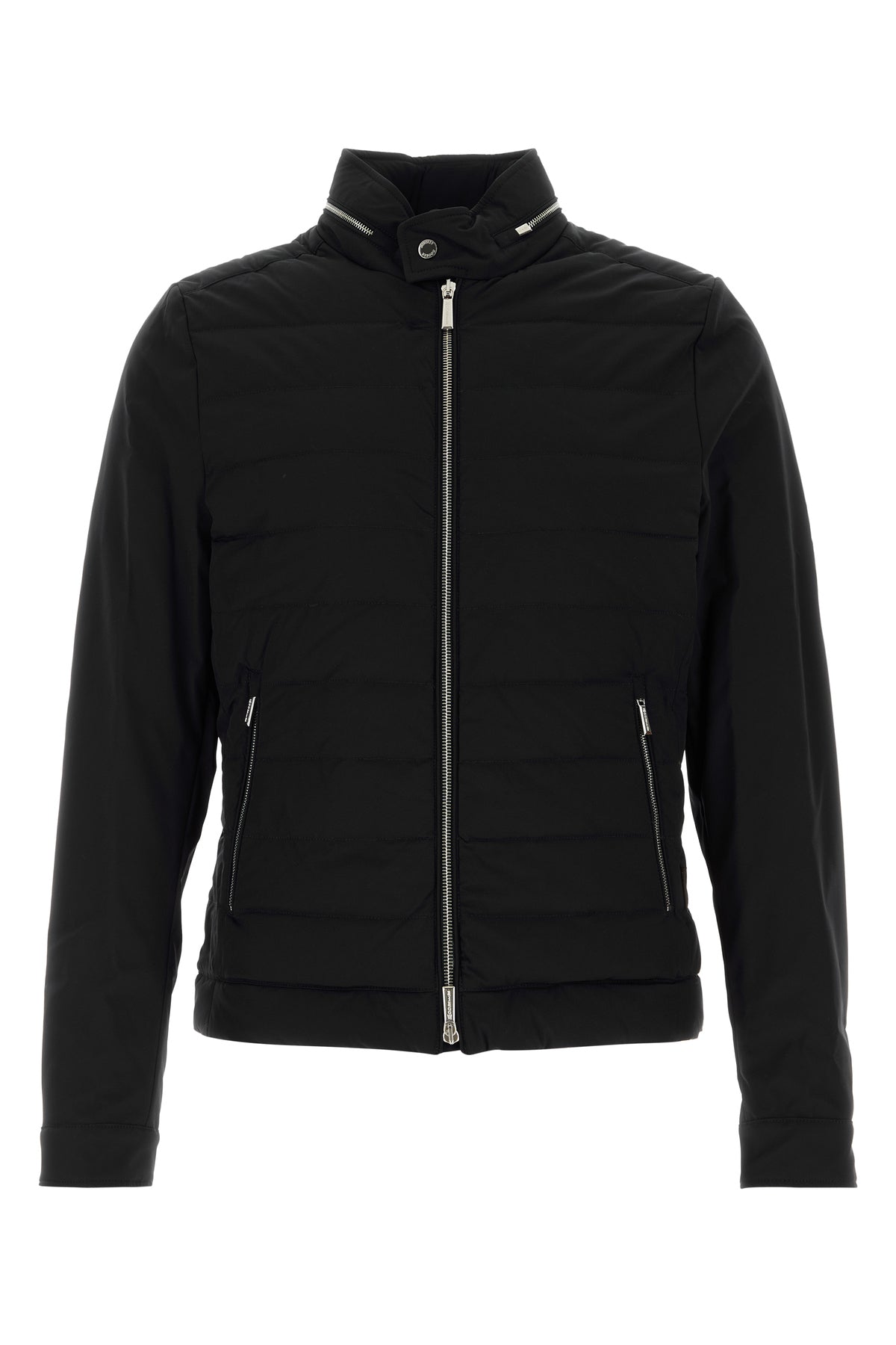 Down jacket realized in quilted nylon characterized by pull-out hood.