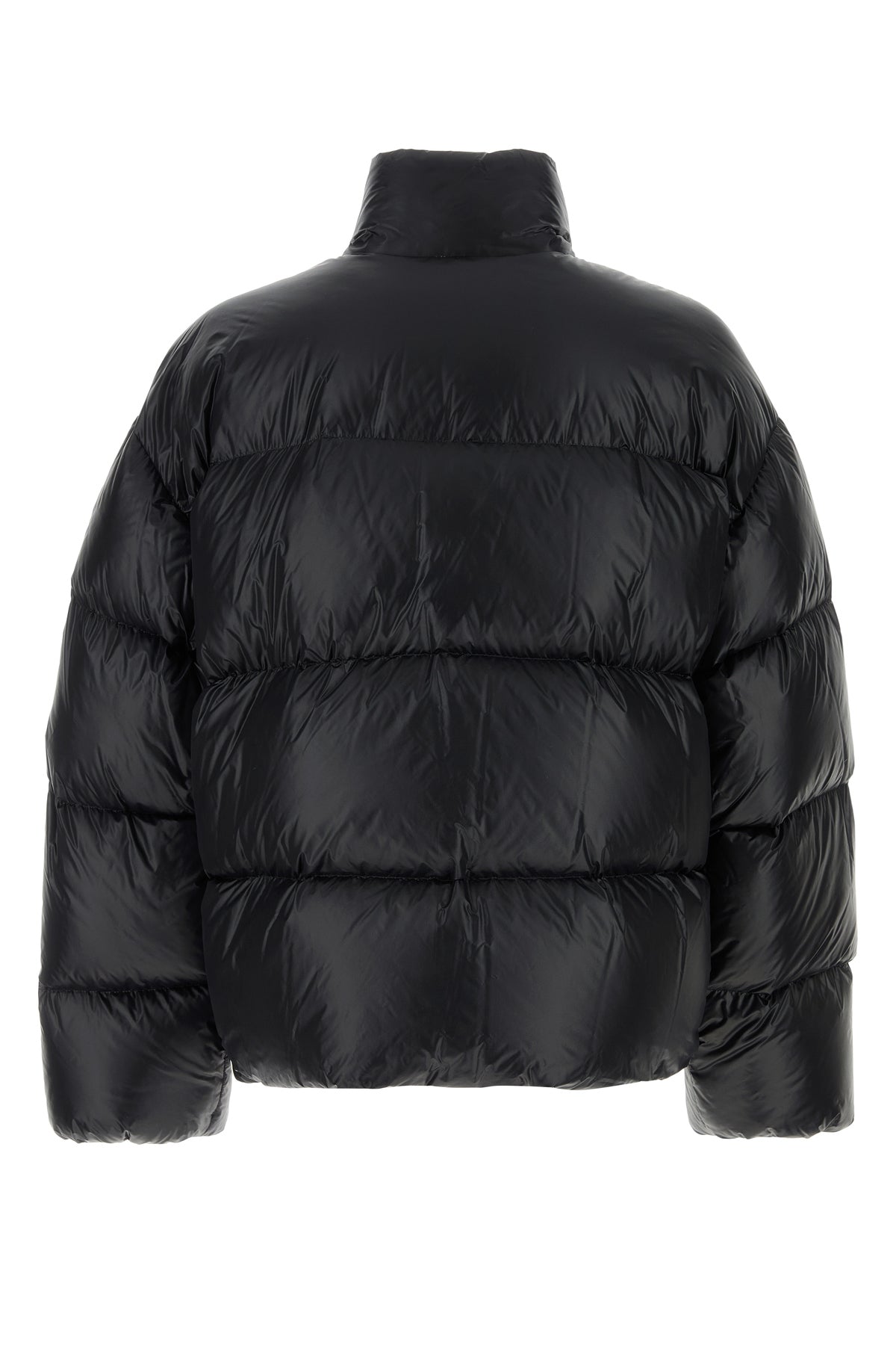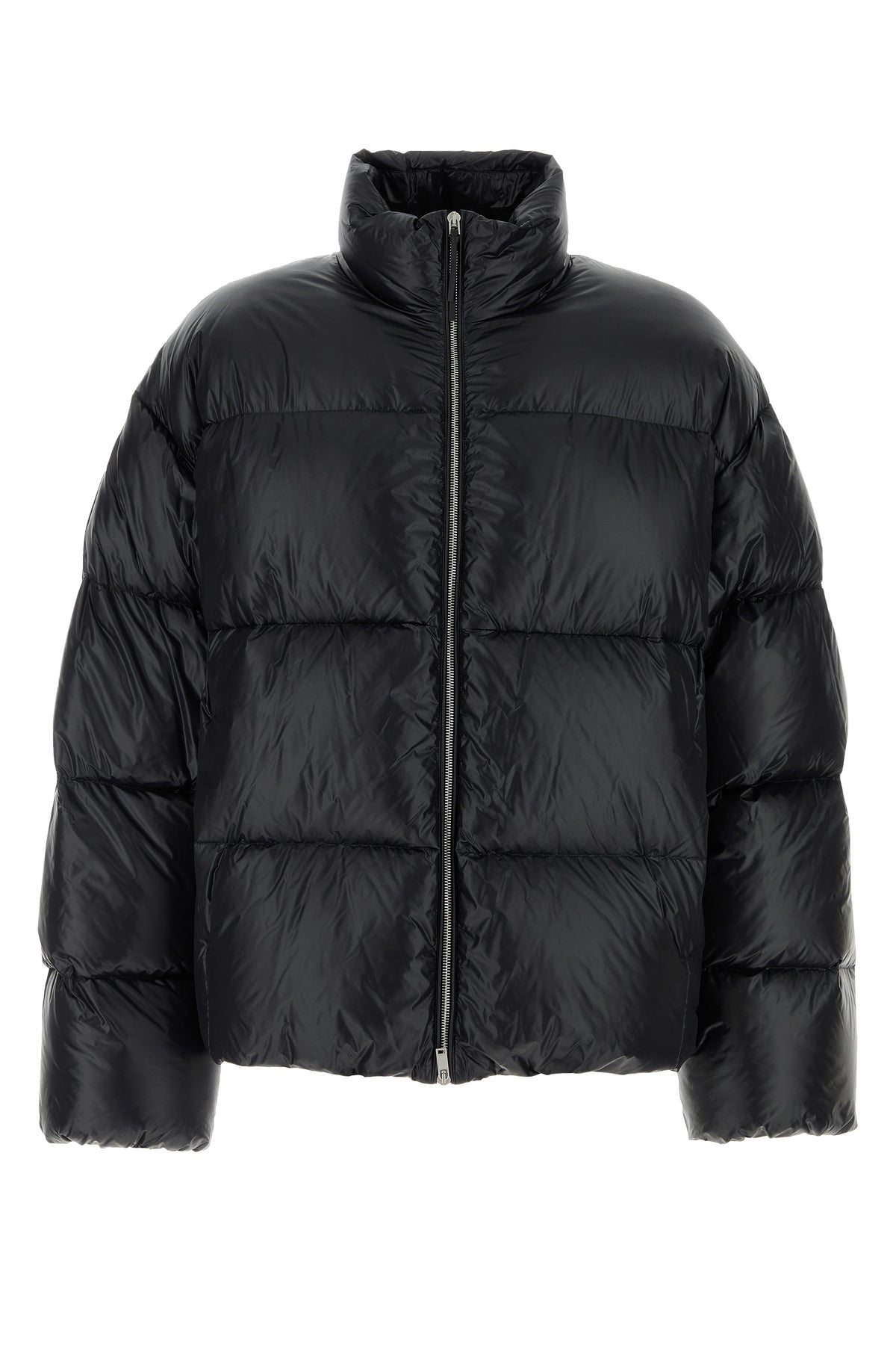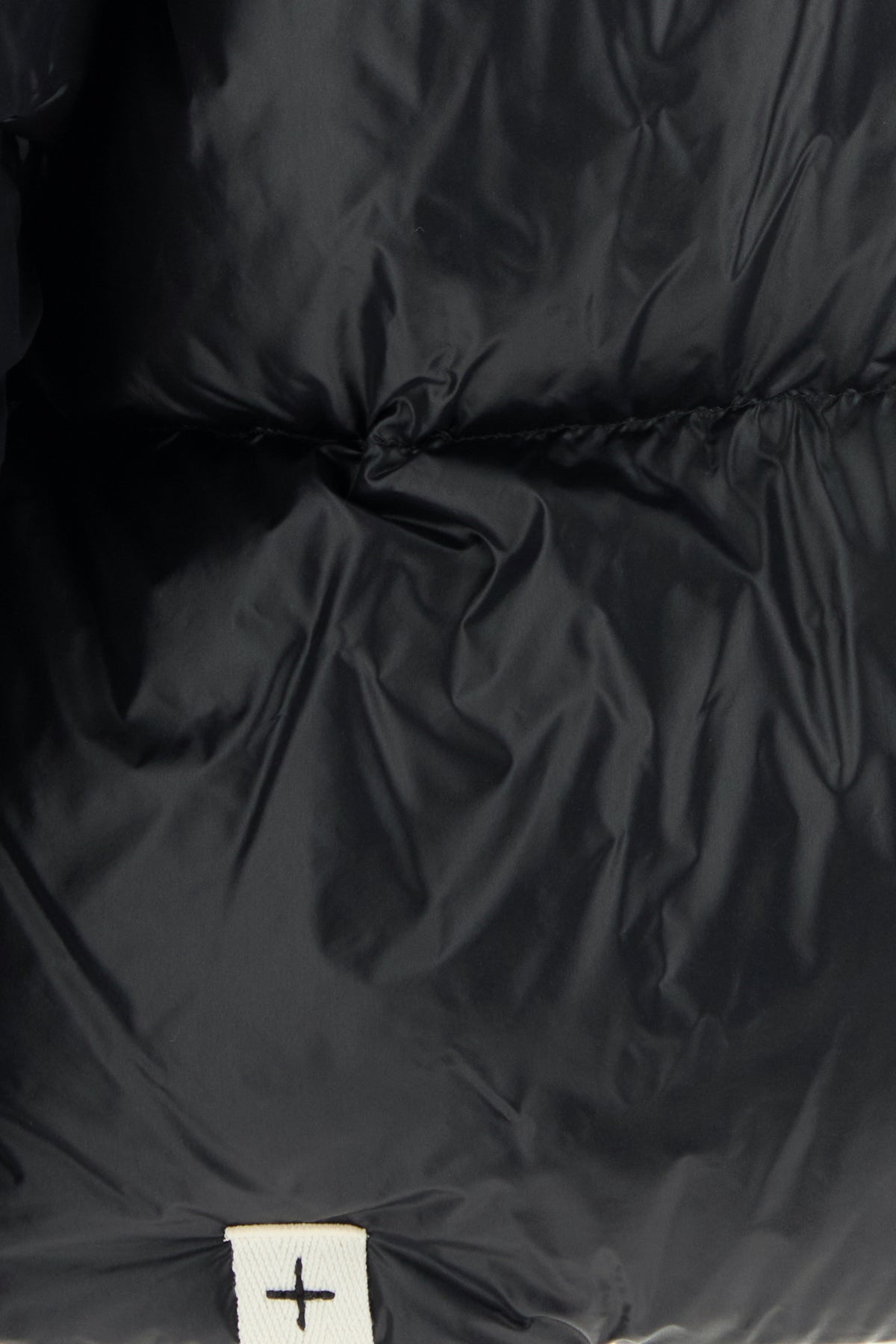 Down jacket realized in quilted nylon characterized by funnel neck.