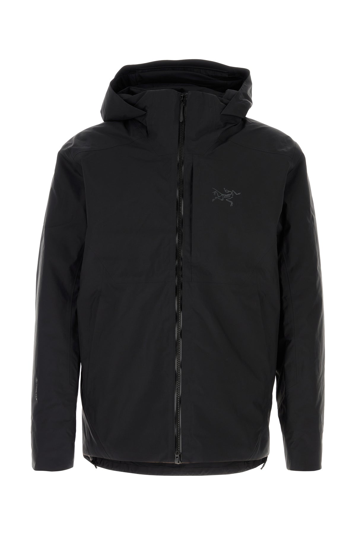 Jacket realized in nylon characterized by contrasting printed logo on the chest and on the hood.