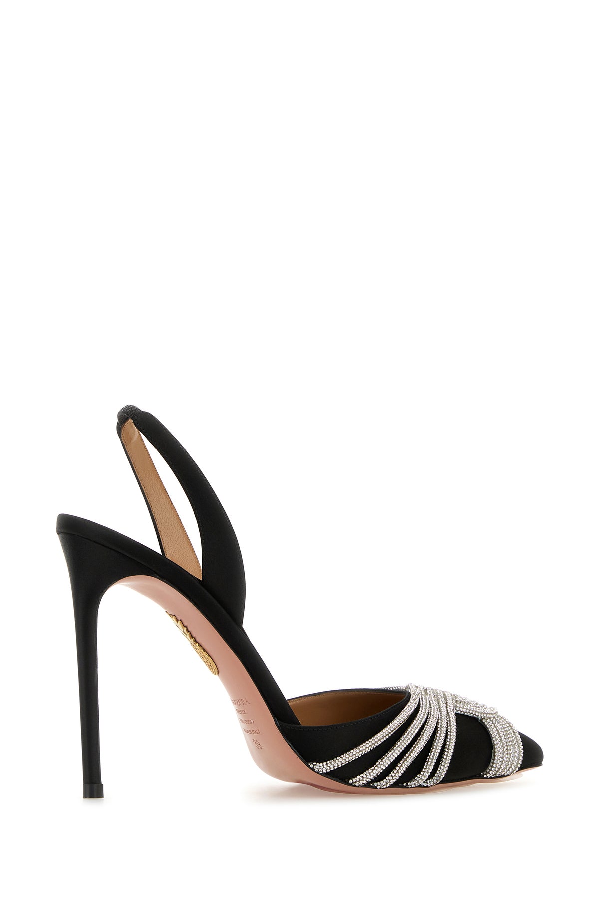 Slingback realized in satin characterized by peculiar embellishment at the front.