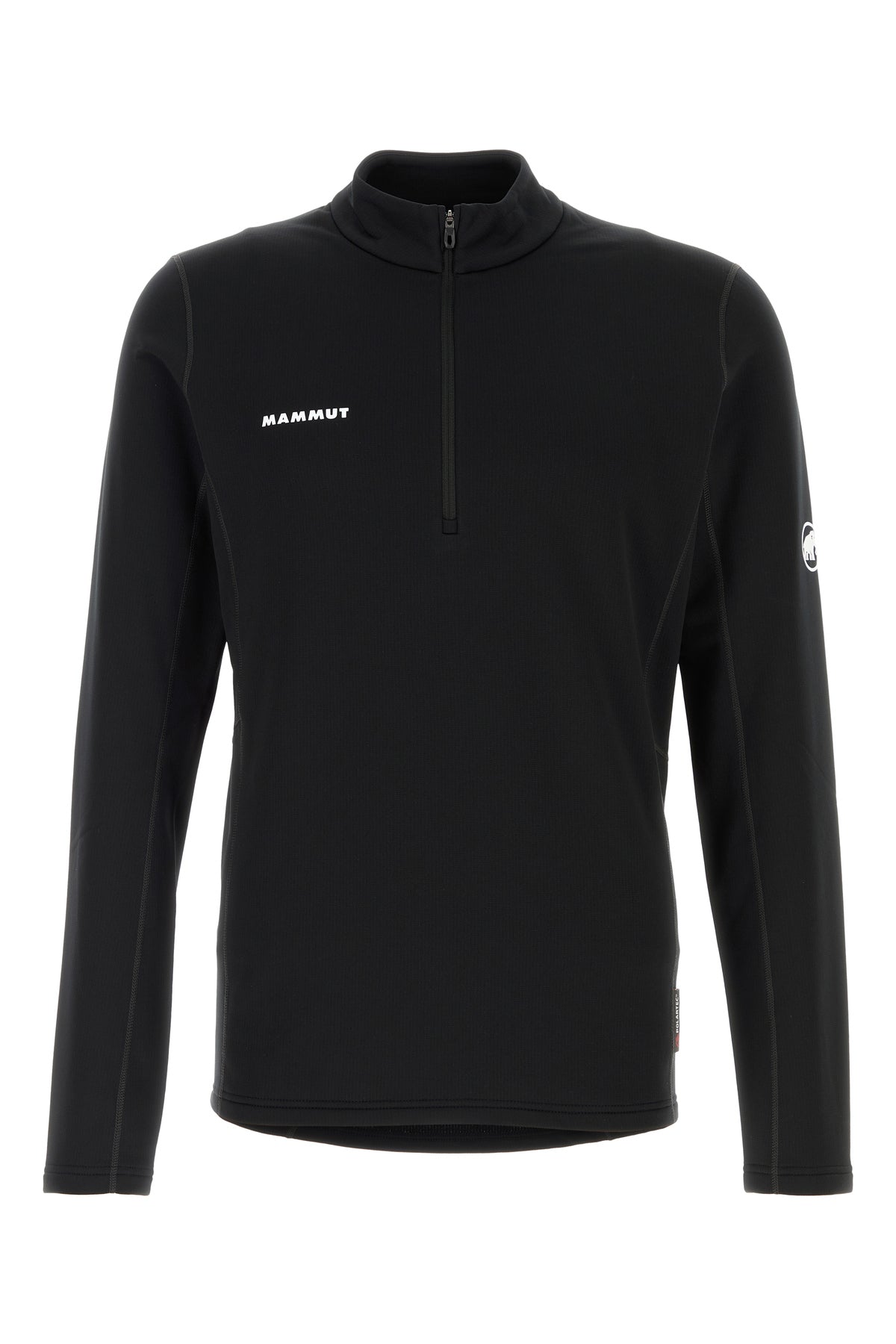 Long-sleeves t-shirt realized in stretch polyester characterized by contrasting printed logo on the chest and at the back and contrasting logoed print on the sleeve.