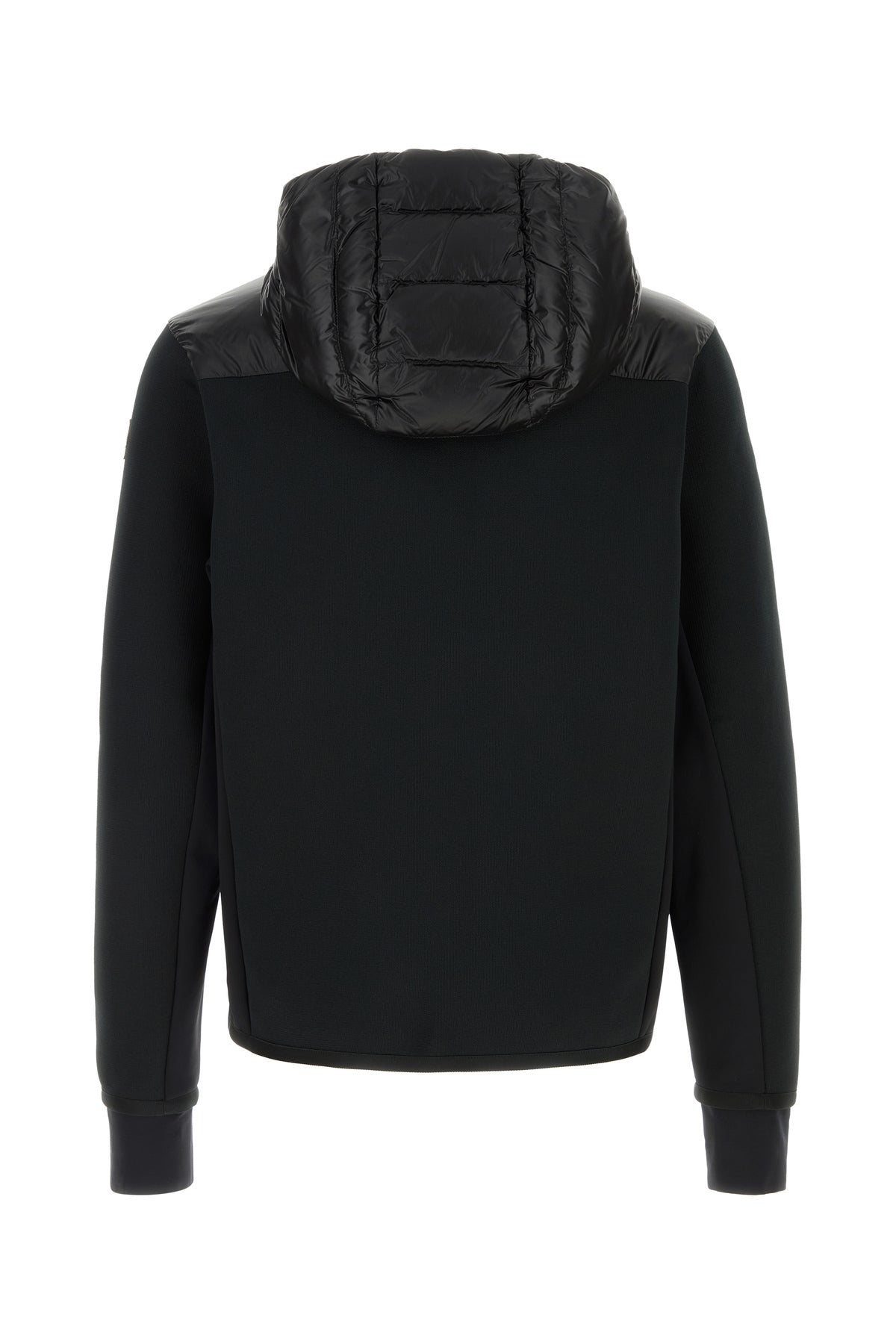 Cardigan realized in tech fabric with quilted nylon insert enriched by contrasting logoed patch on the sleeve.
