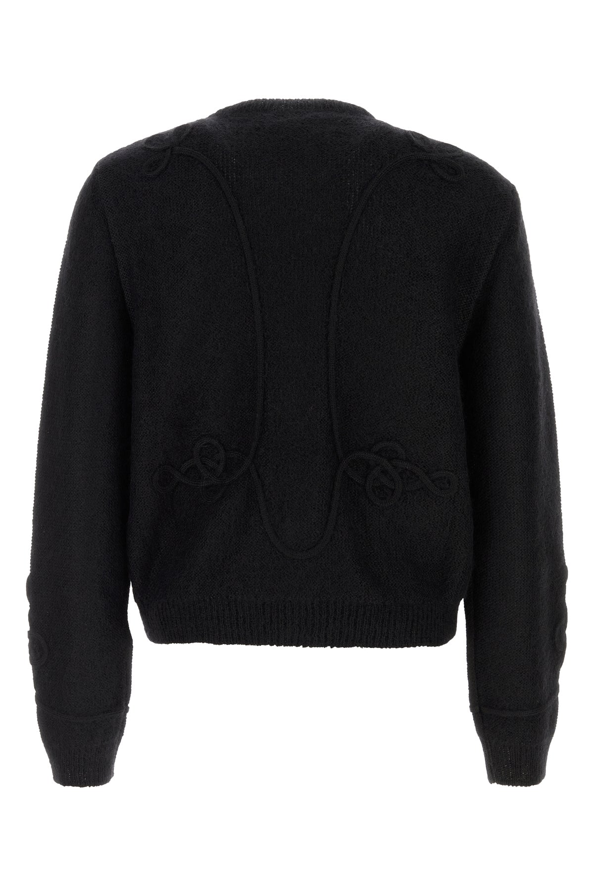 Cardigan realized in viscose blend characterized by peculiar tonal embroidery at the front and at the back.