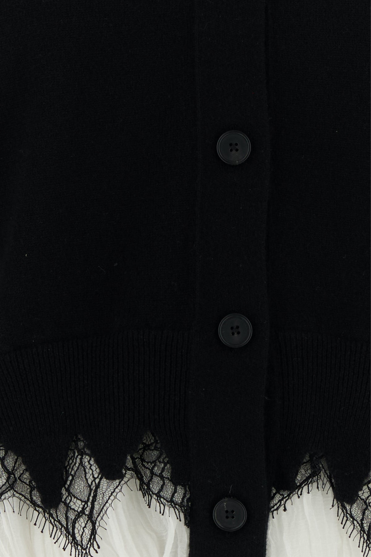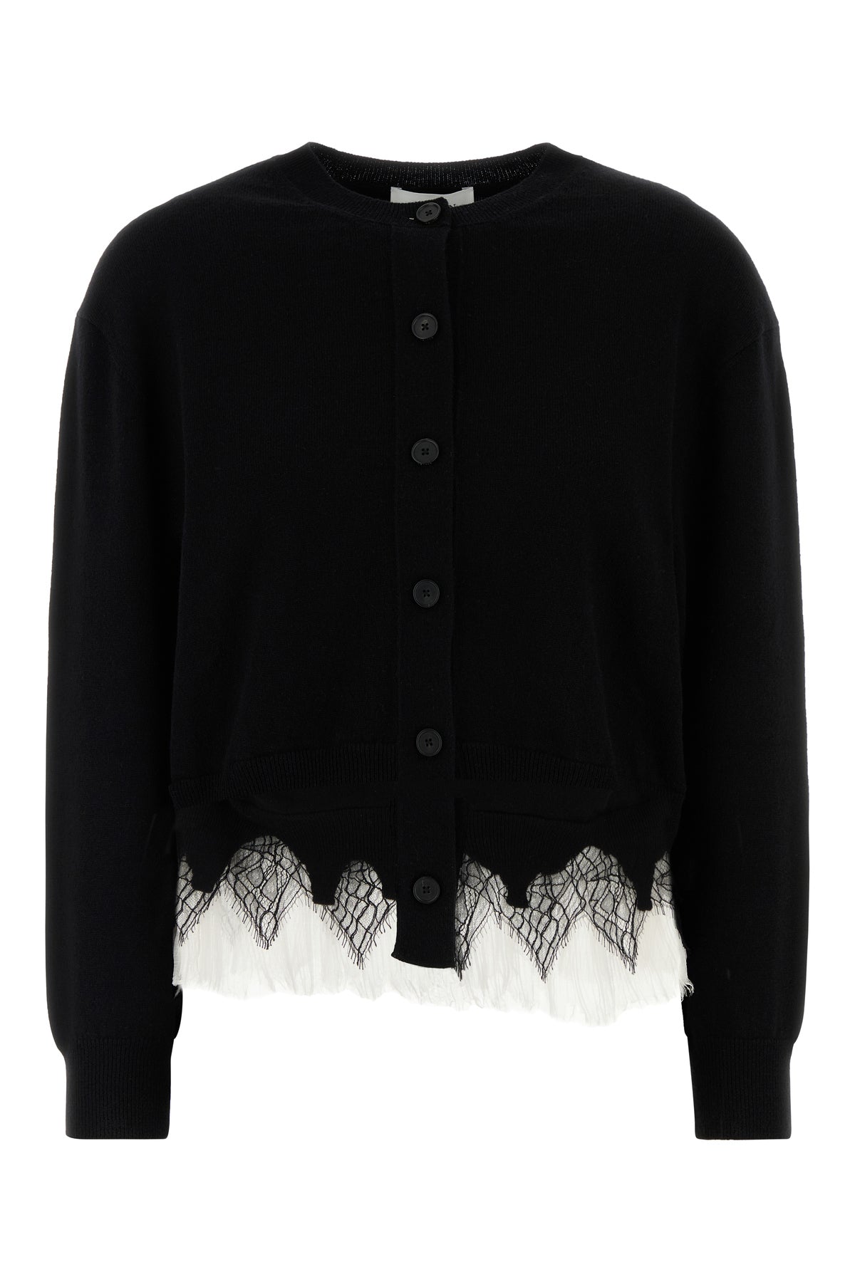 Cardigan realized in wool and cashmere with contrasting insert on the hemline.