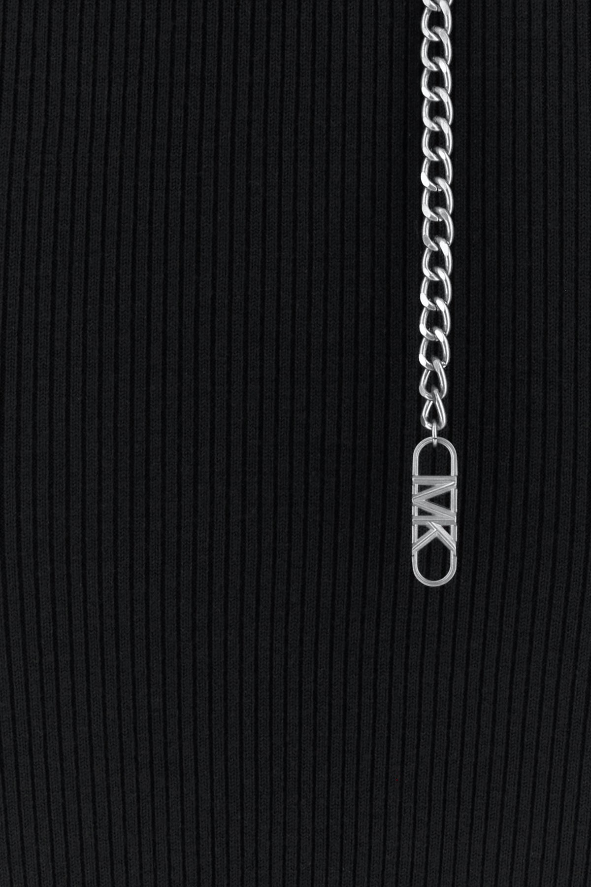 Midi-length dress realized in ribbed wool blend enriched by detachable metal chain belt.