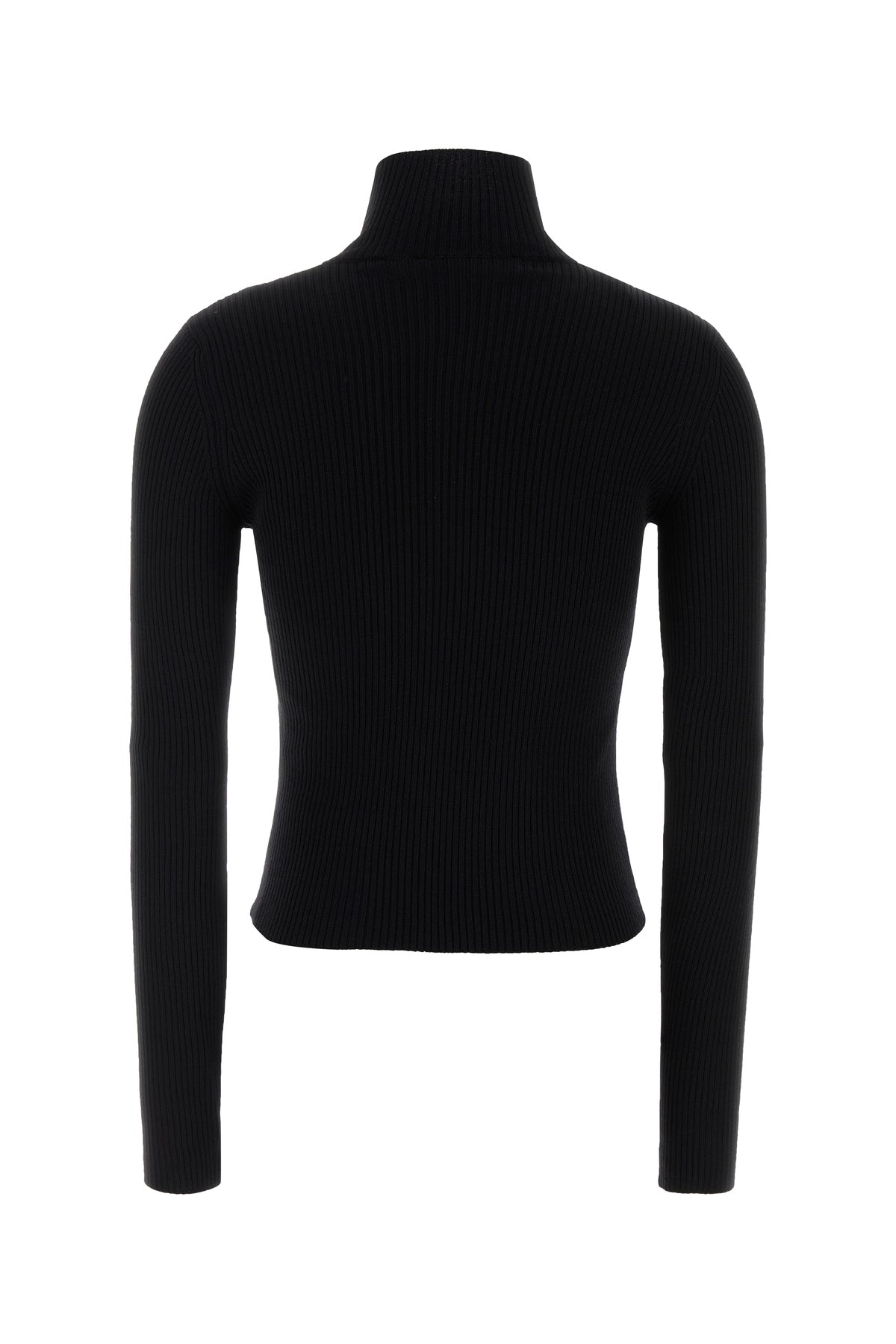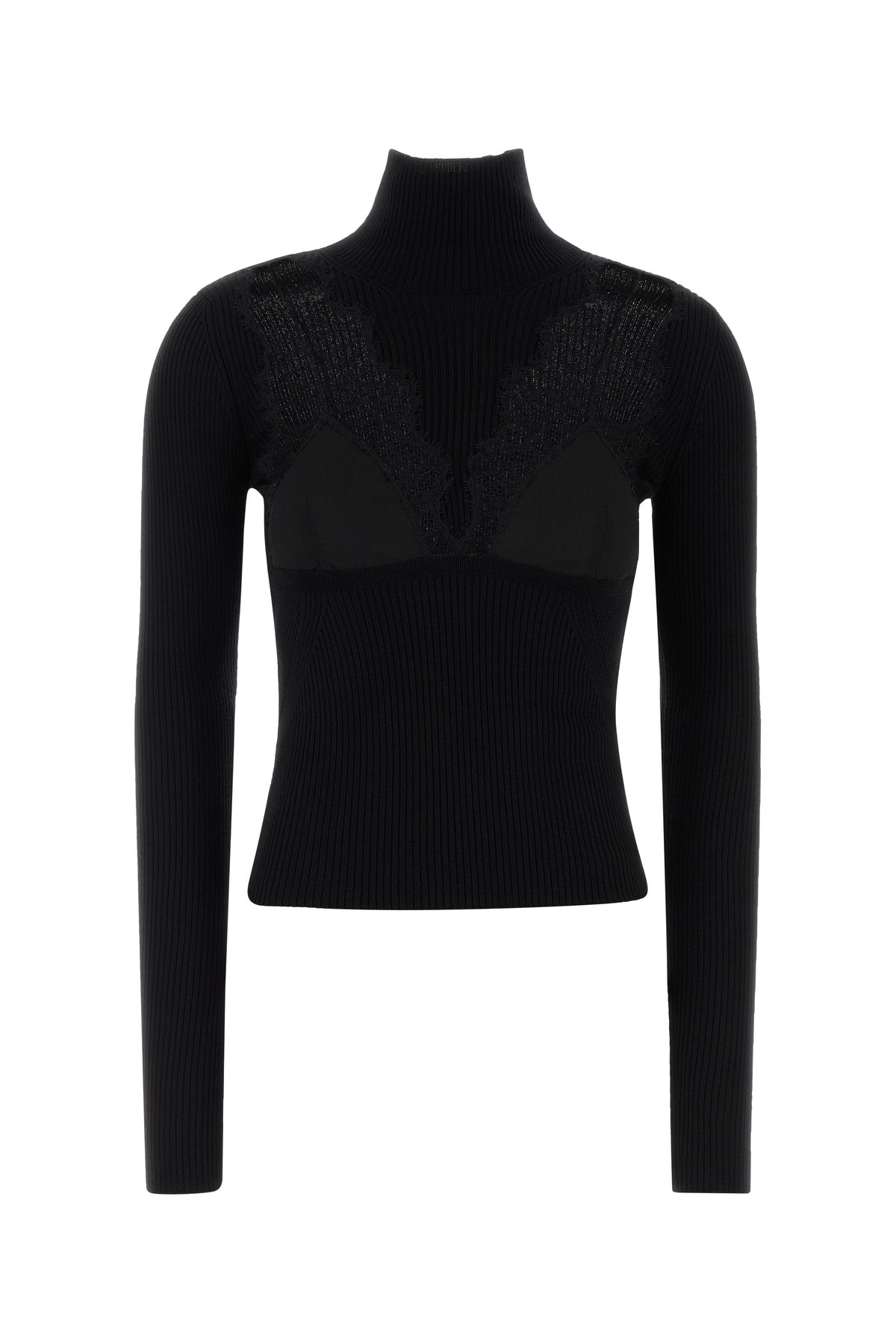 Sweater realized in ribbed wool blend enriched by tonal satin and lace inserts at the front.