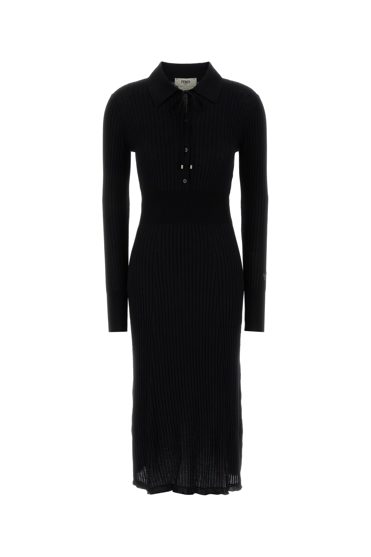 Fitted dress realized in pure ribbed wool characterized by embroidered logo on the cuff.