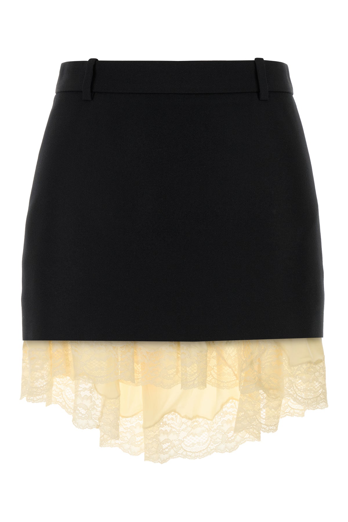Mini skirt realized in pure wool with contrasting lace insert on the hemline.