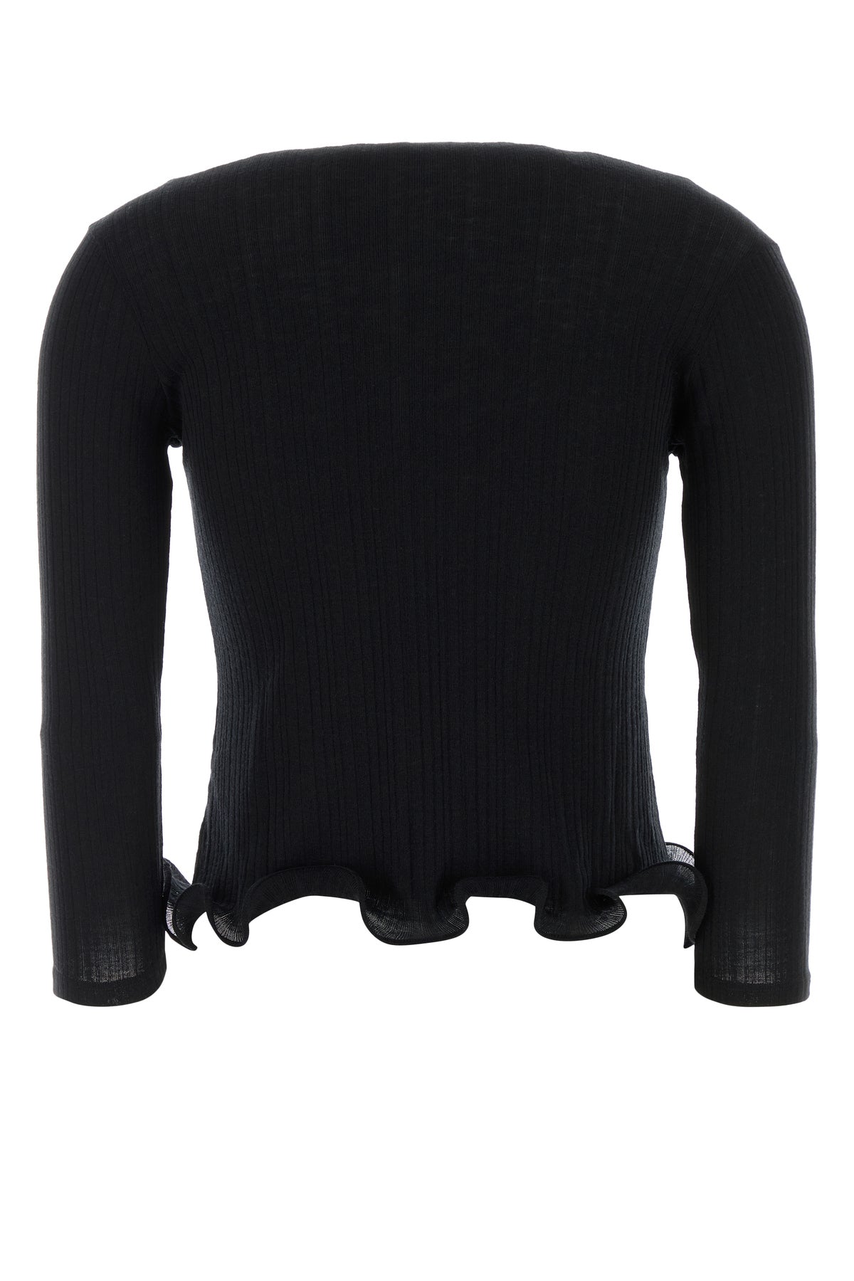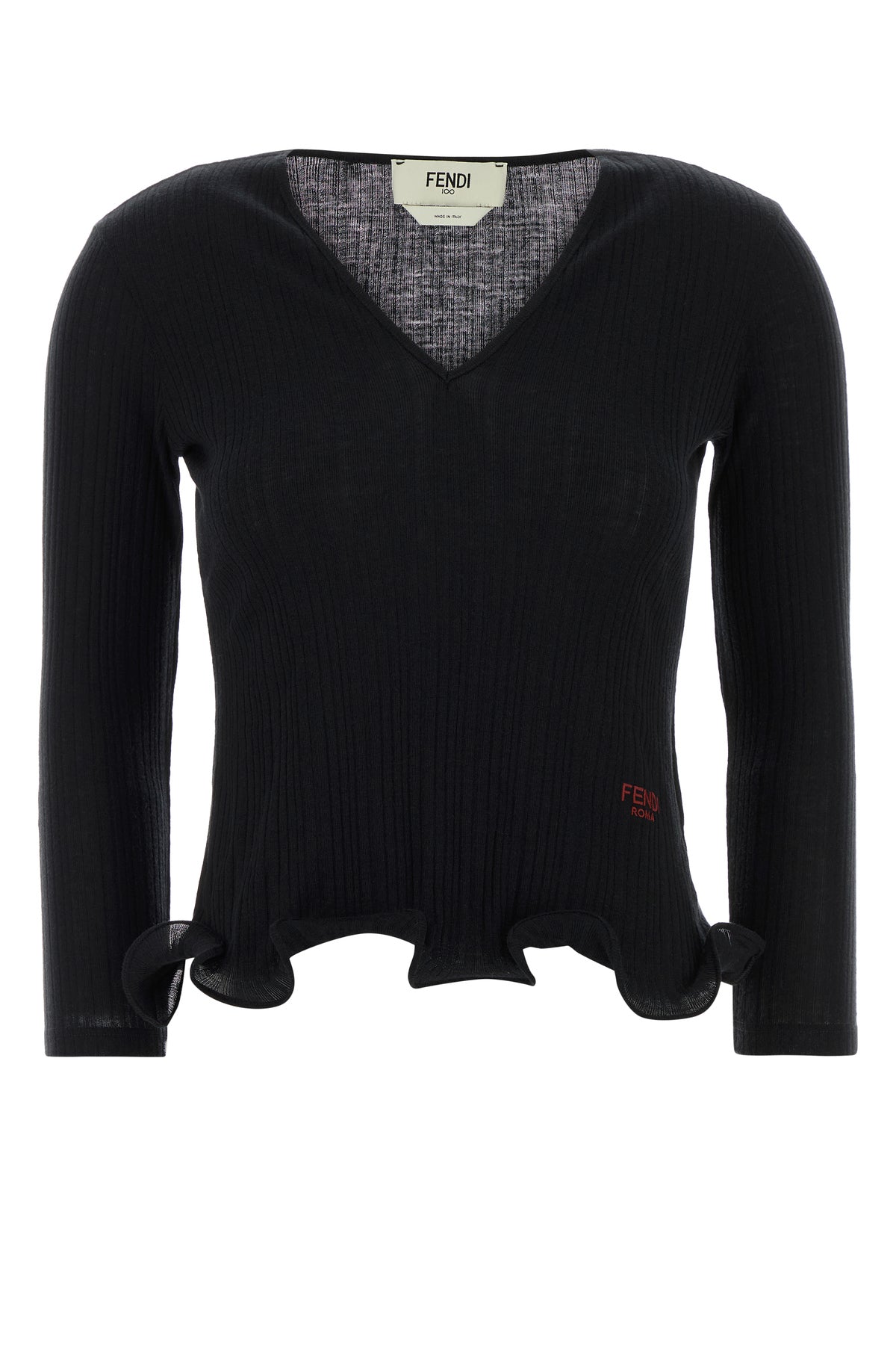 Top realized in pure virgin wool characterized by contrasting embroidered logo on the hemline.