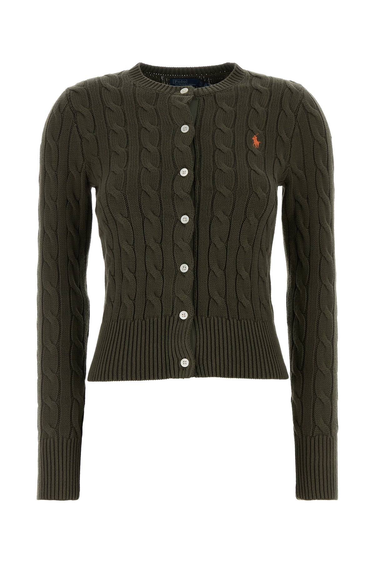 Knitted cardigan realized in pure cotton characterized by iconic embroidered logo on the chest.