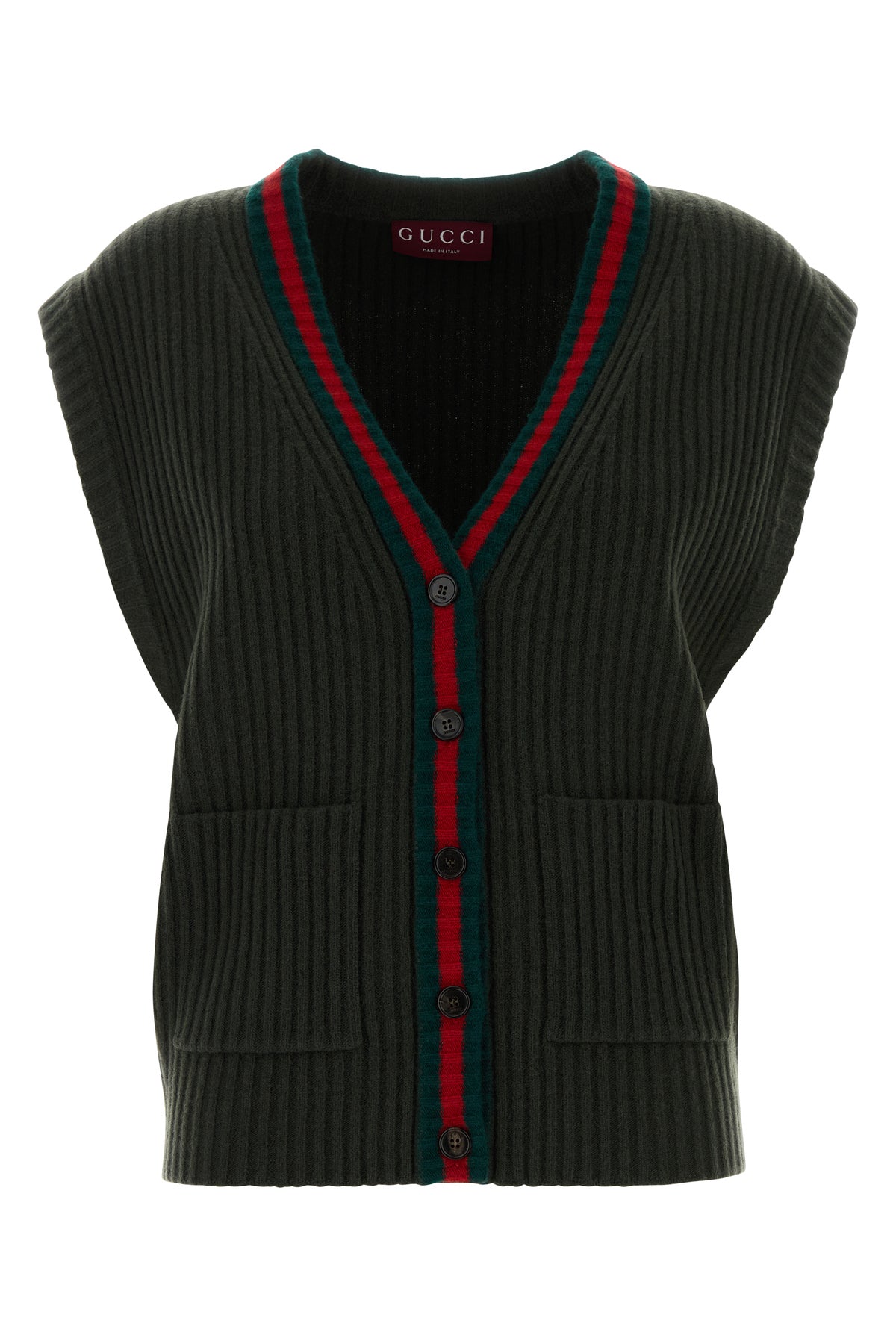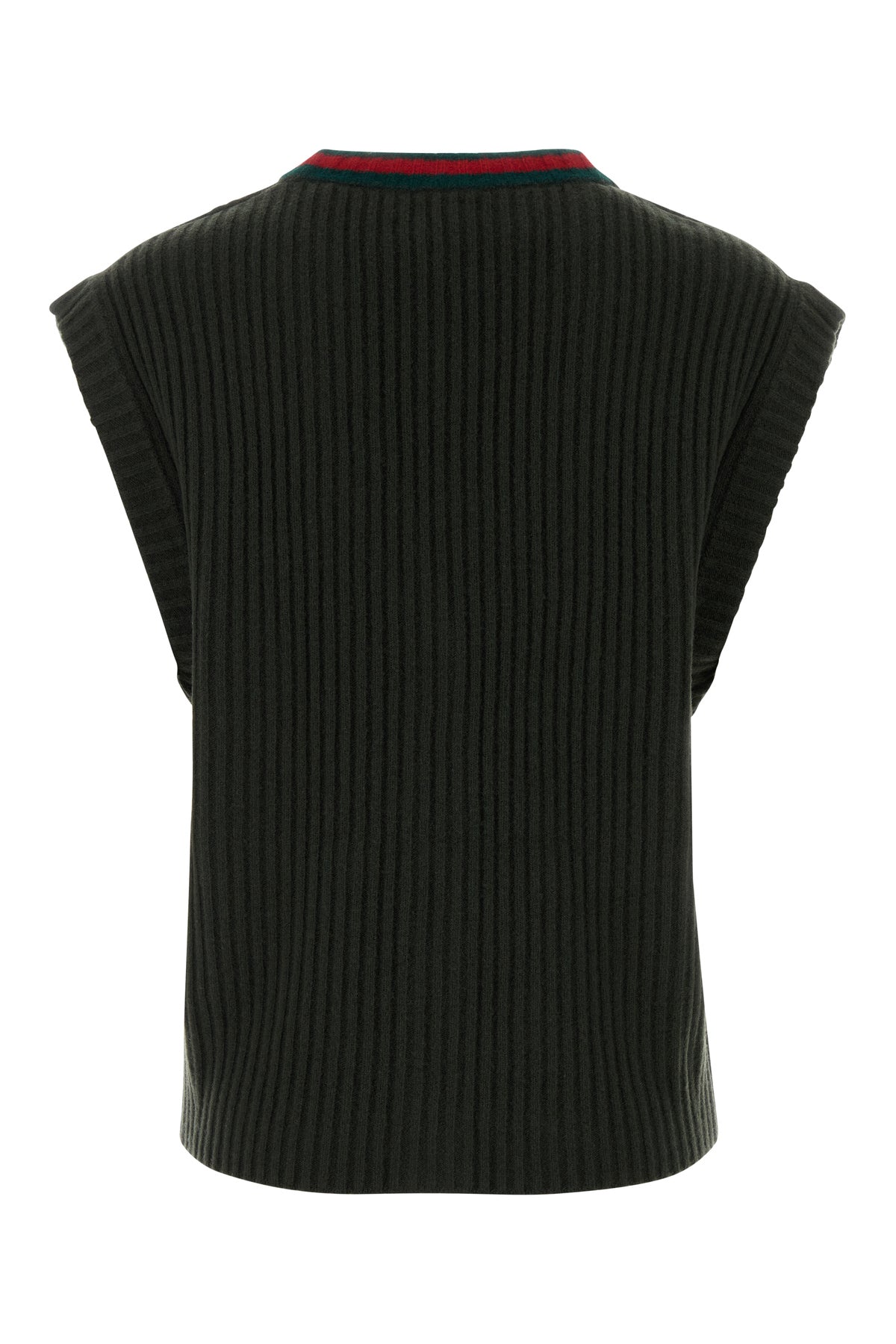 Vest realized in pure ribbed wool characterized by Web embroidery at the front.