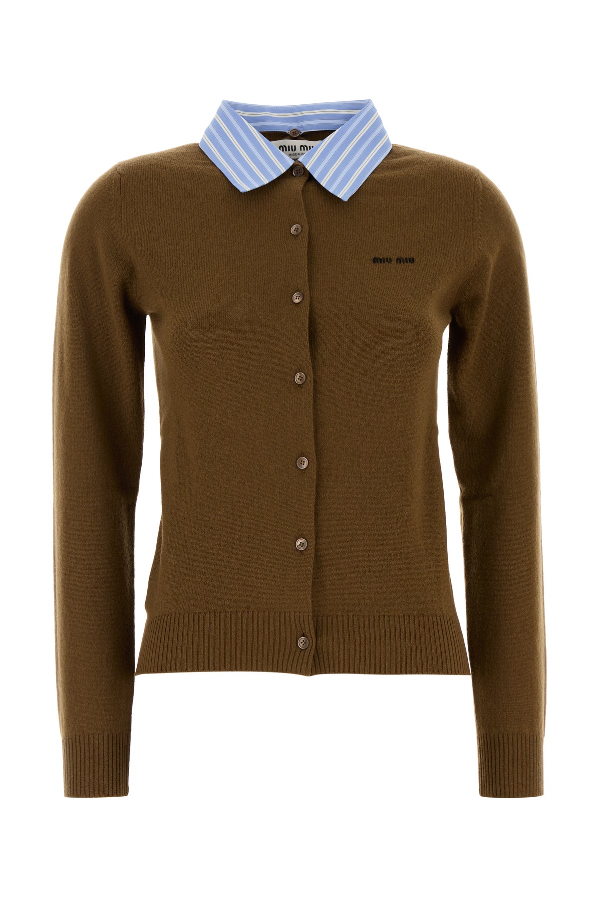 Cardigan realized in pure cashmere characterized by contrasting embroidered logo on the chest.