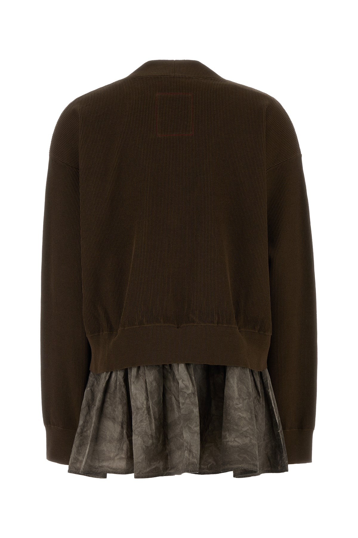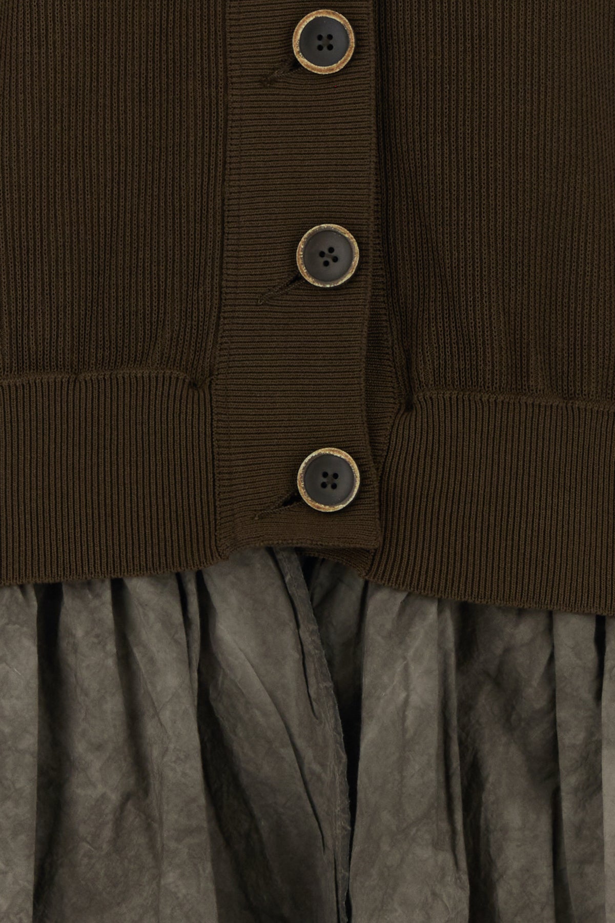Oversize cardigan realized in cotton and silk enriched by vintage-effect poplin insert on the hemline.