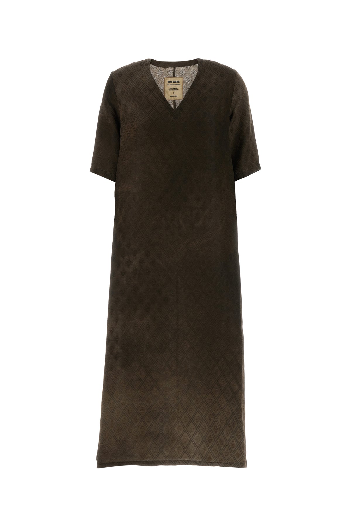 Tunic dress realized in jersey characterized by tonal peculiar embroidery on the entire surface.