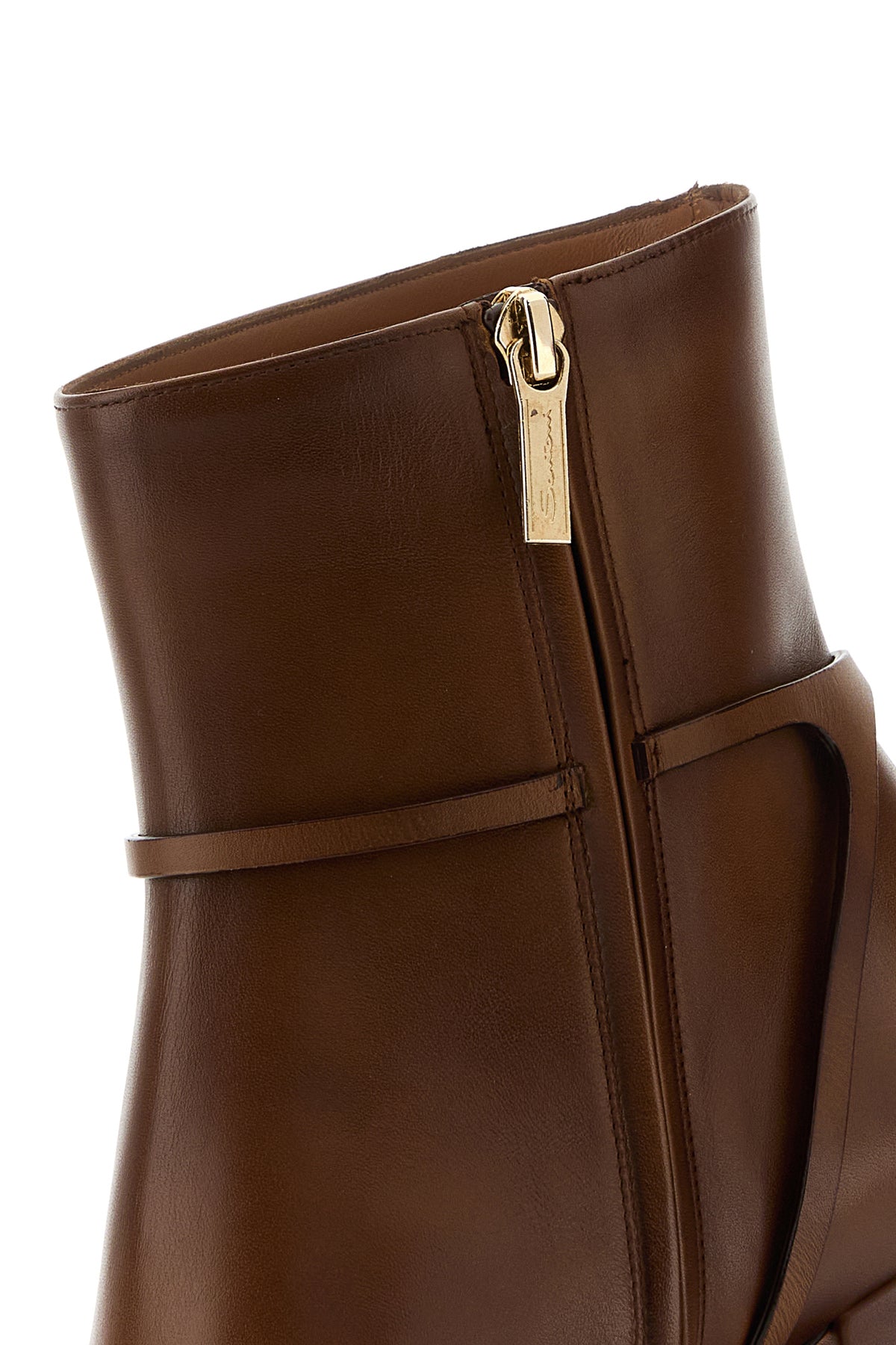 Ankle boots realized in smooth leather enriched by tonal leather decorative straps.
