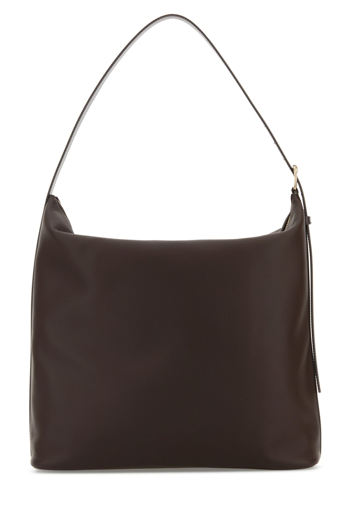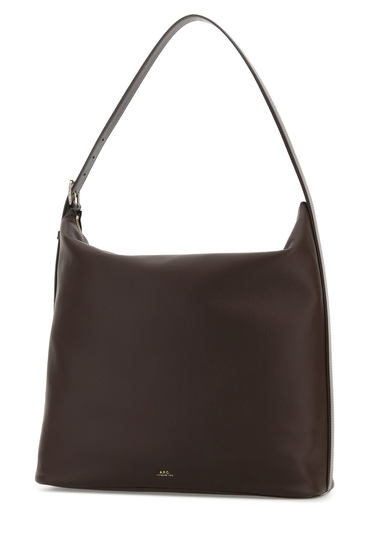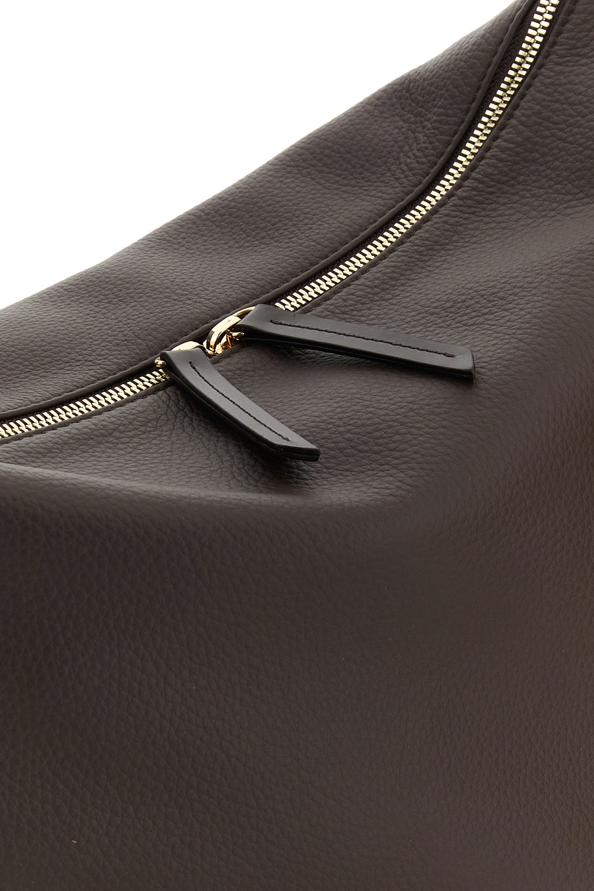 Shopping bag realized in pebble bovine leather characterized by laminated printed logo at the front.