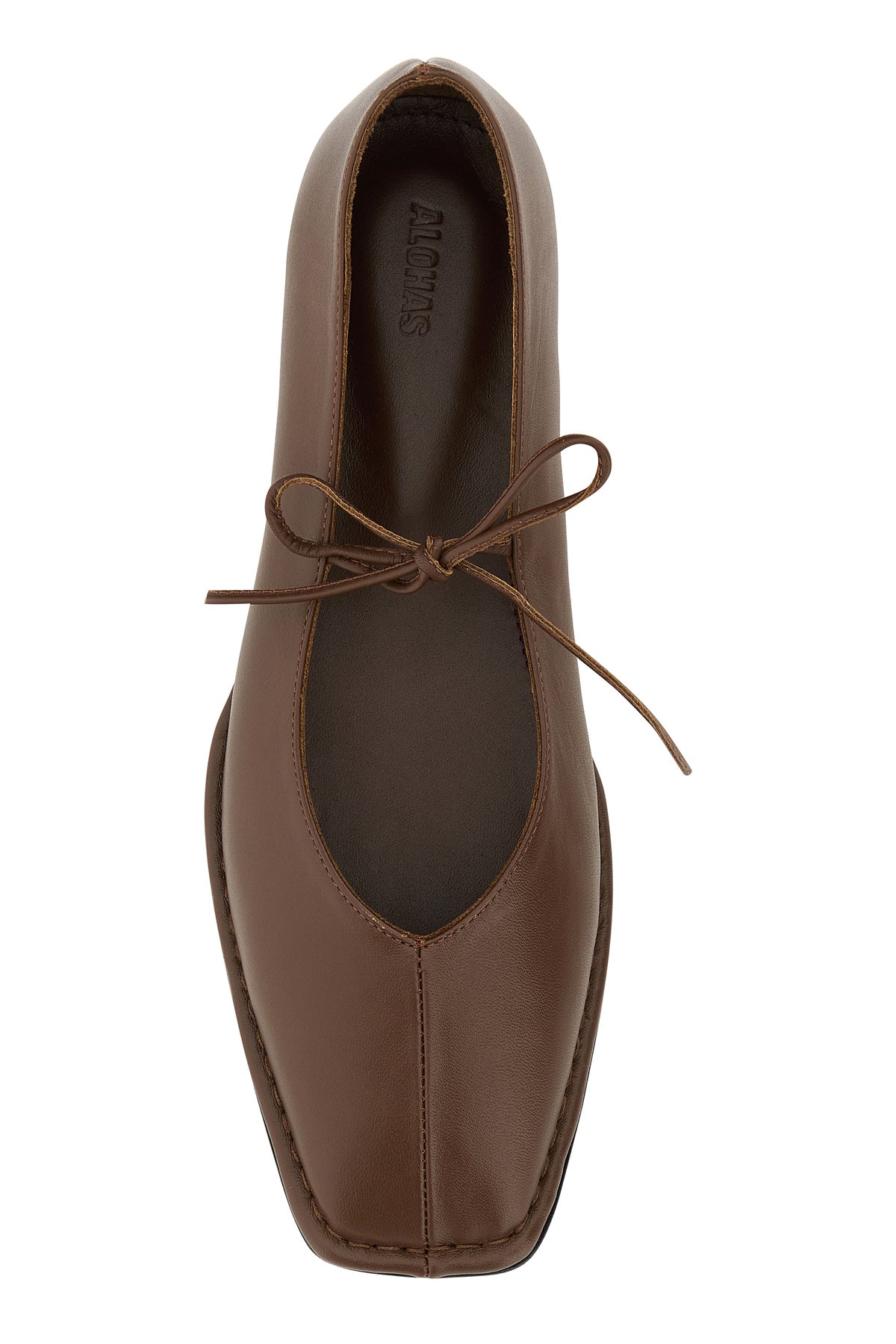 Ballerinas realized in slightly pebble bovine leather characterized by laces to tie on the instep.