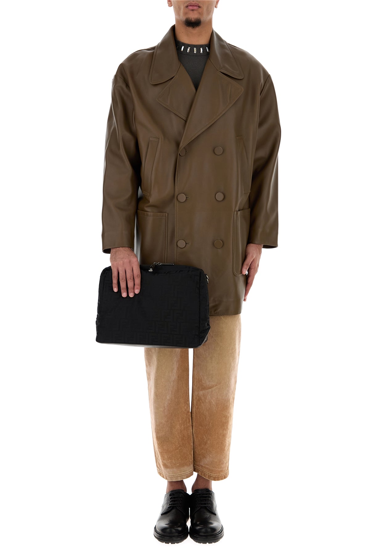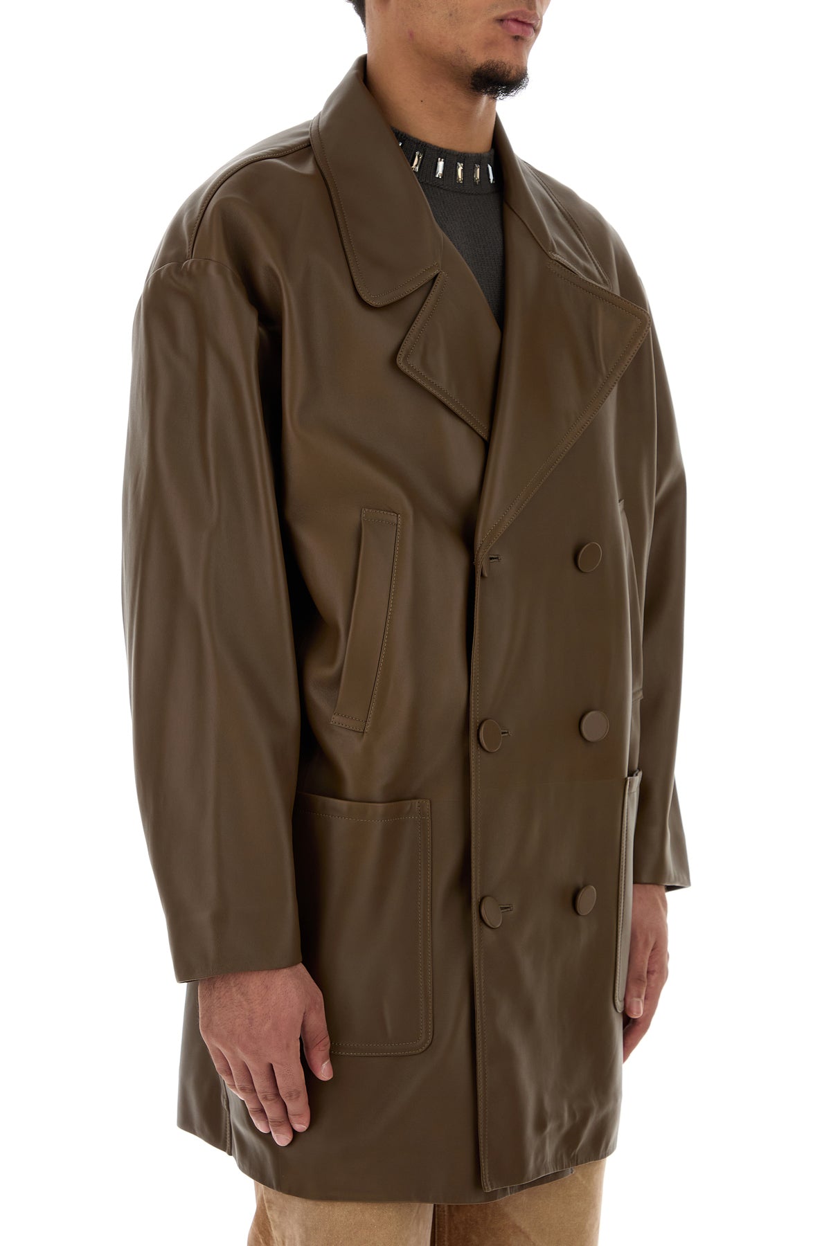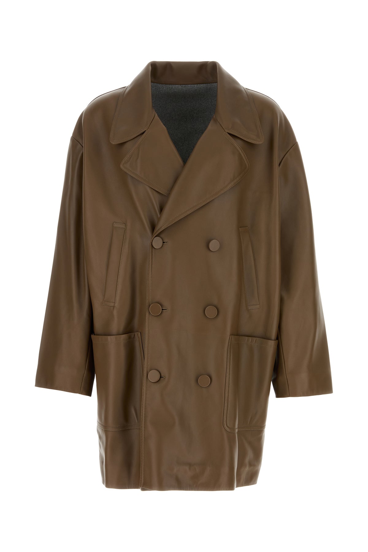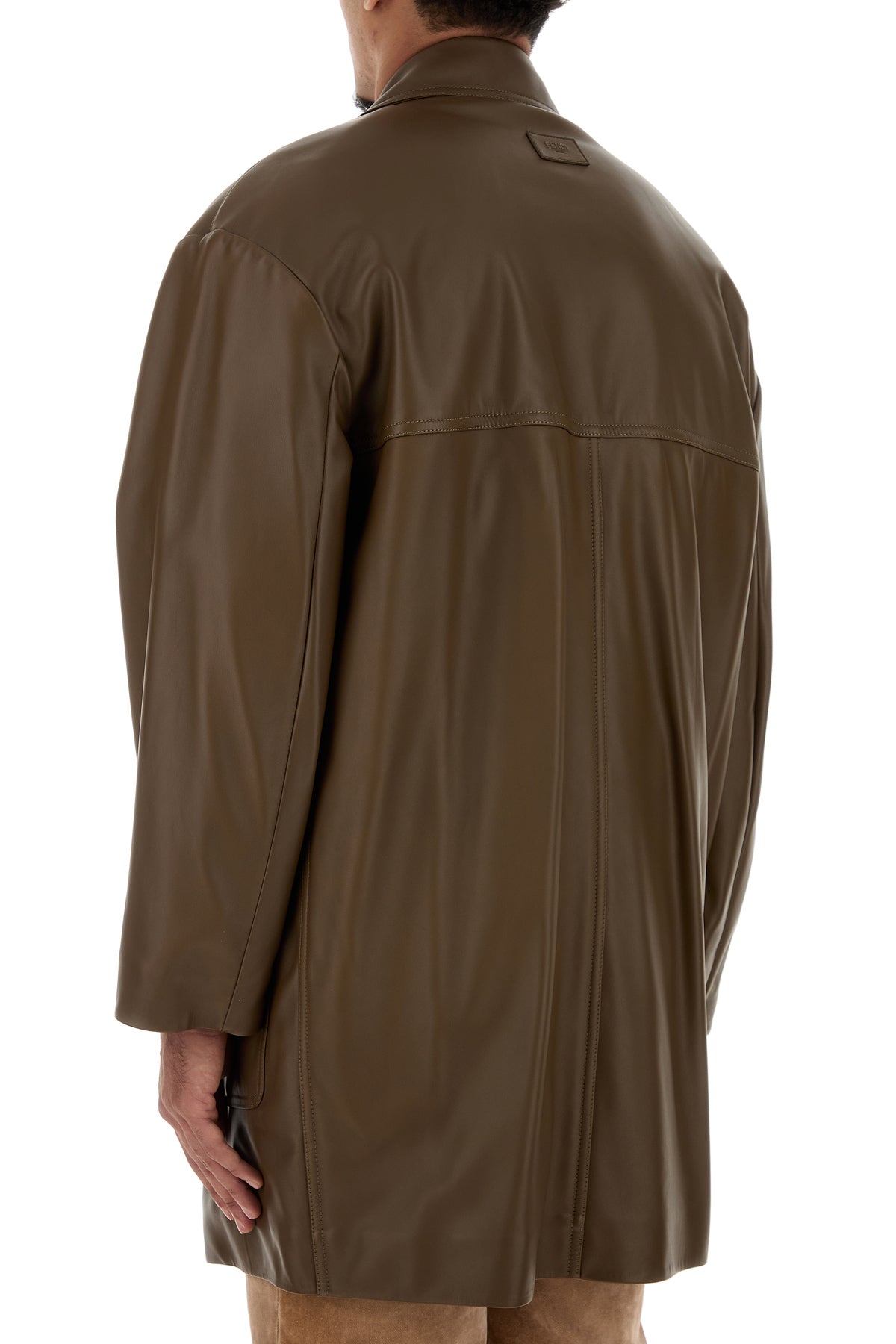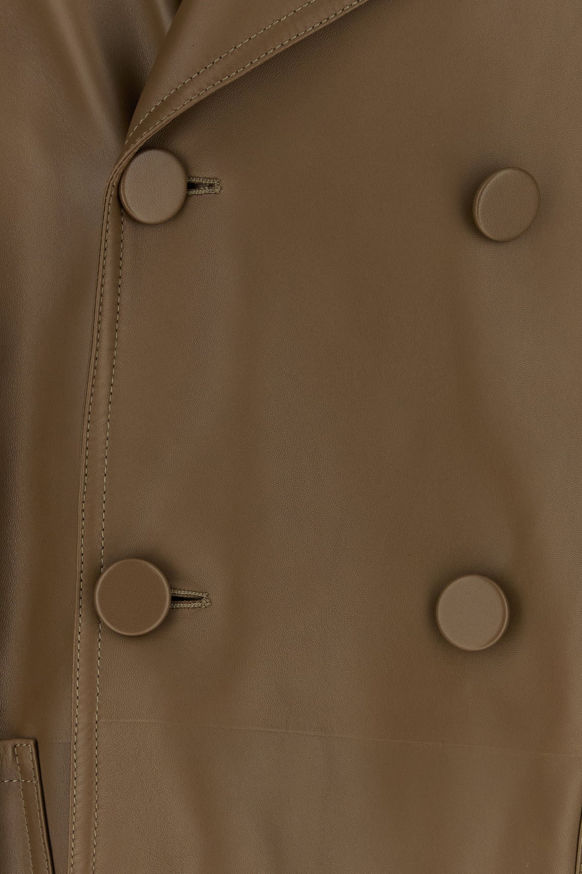 Coat realized in lamb nappa leather enriched by logoed label at the back.