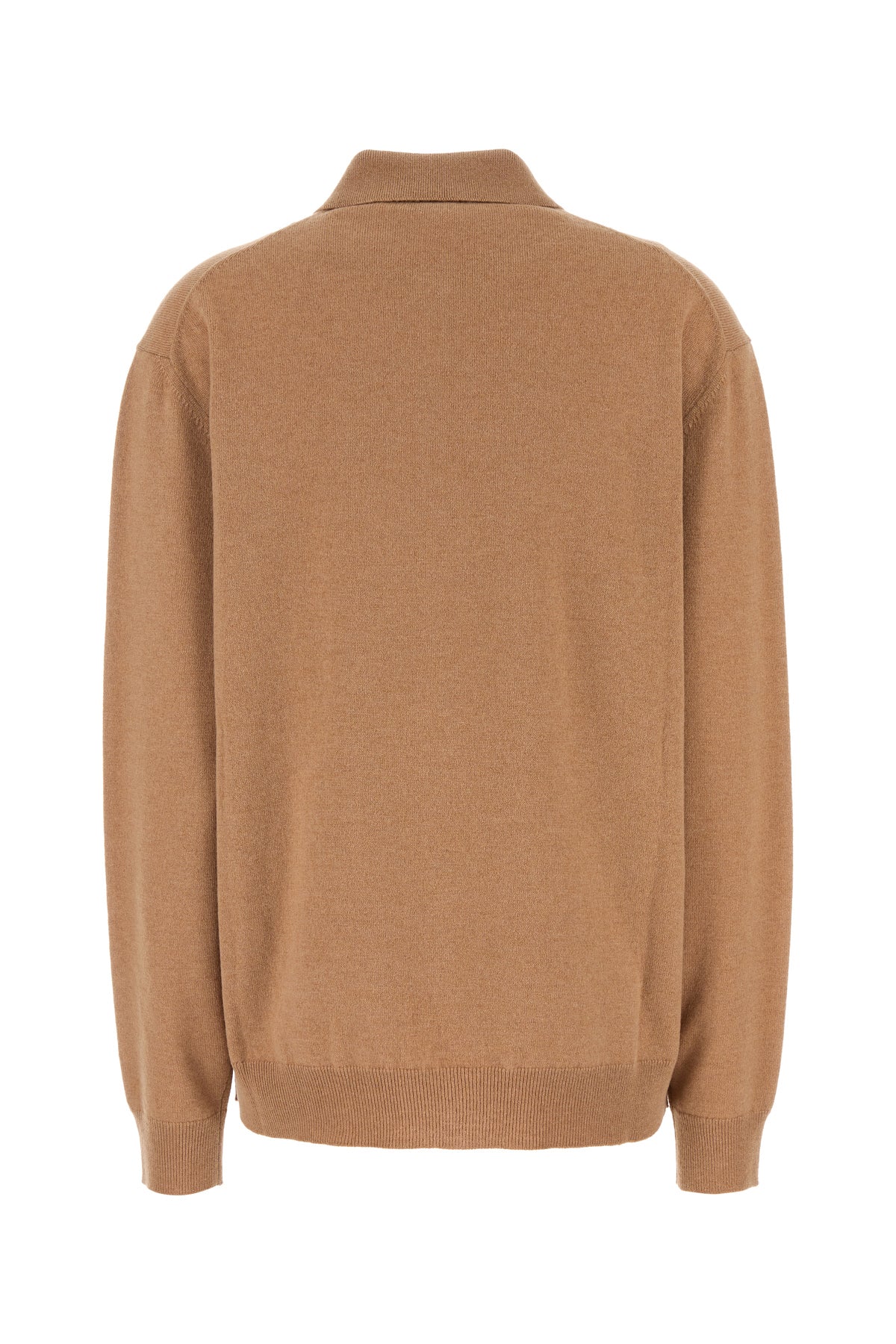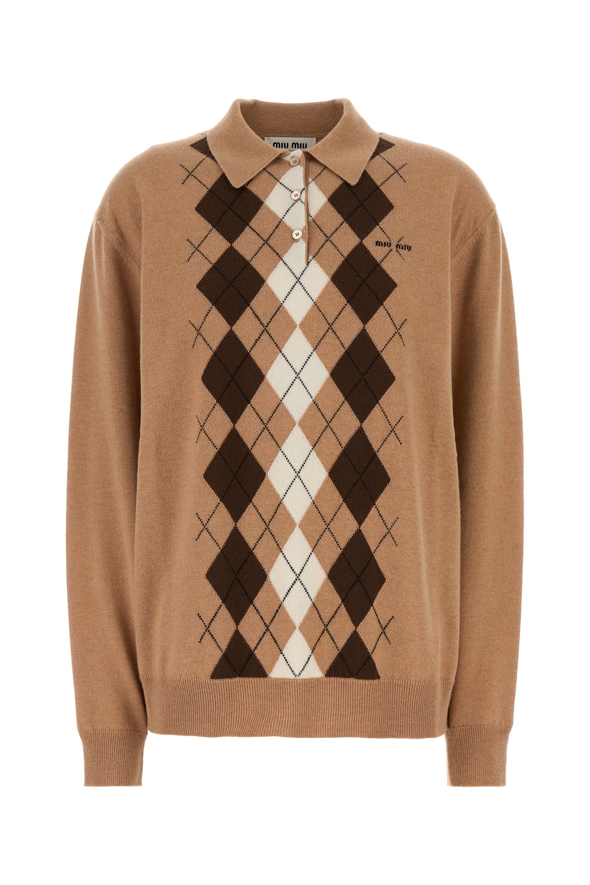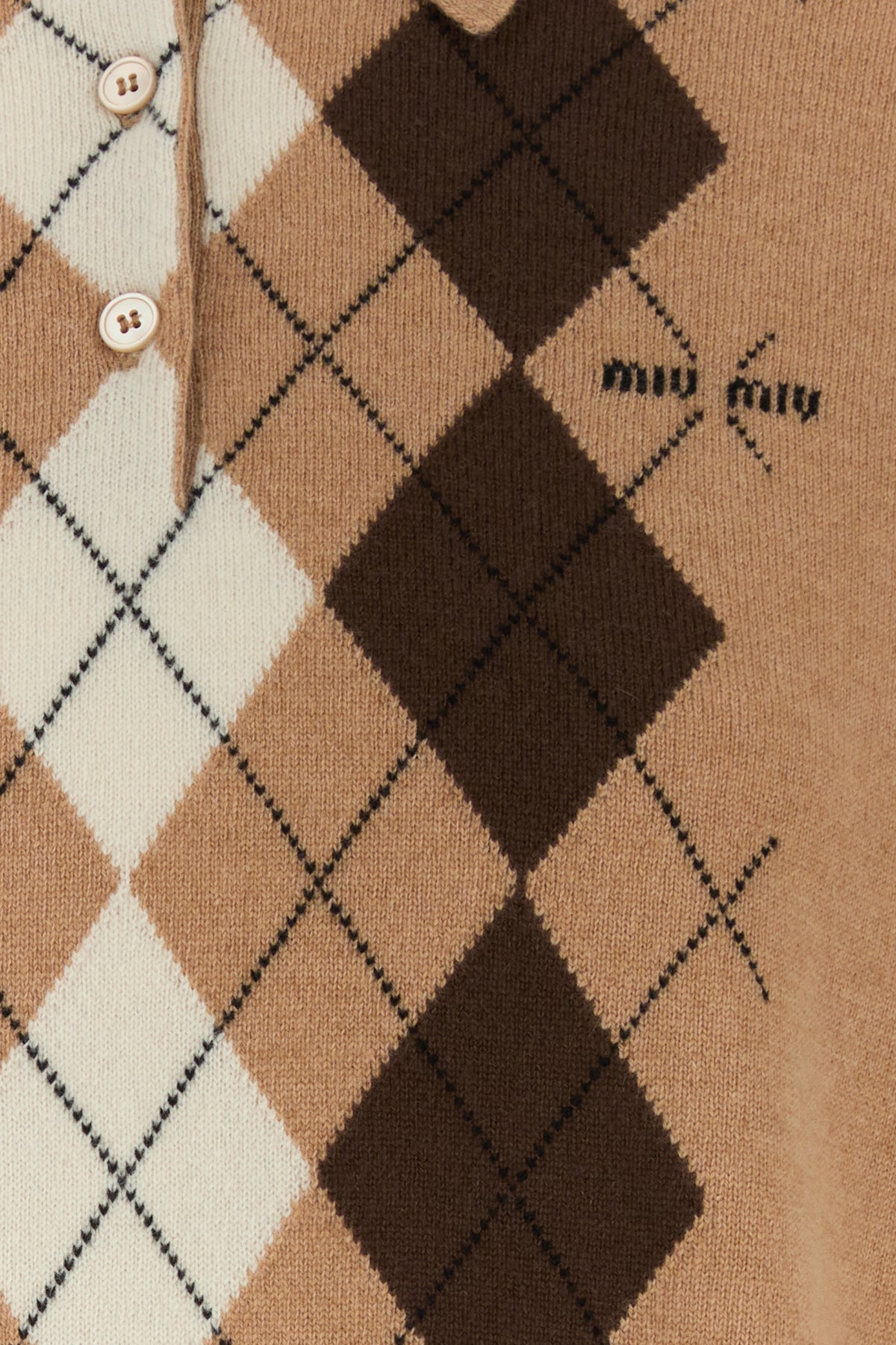 Long-sleeves oversize polo shirt realized in pure cashmere characterized by peculiar checked embroidery at the front and embroidered logo on the chest.