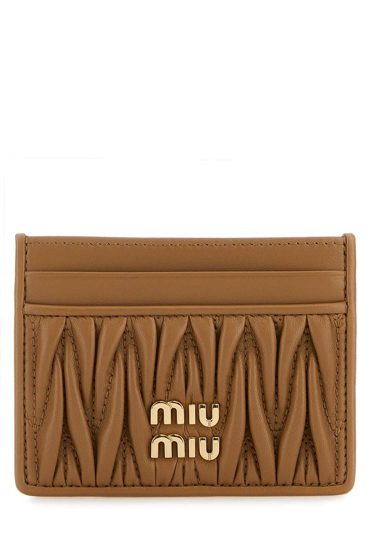 Card holder realized in smooth leather and matelassé leather enriched by metal lettering logo at the front.