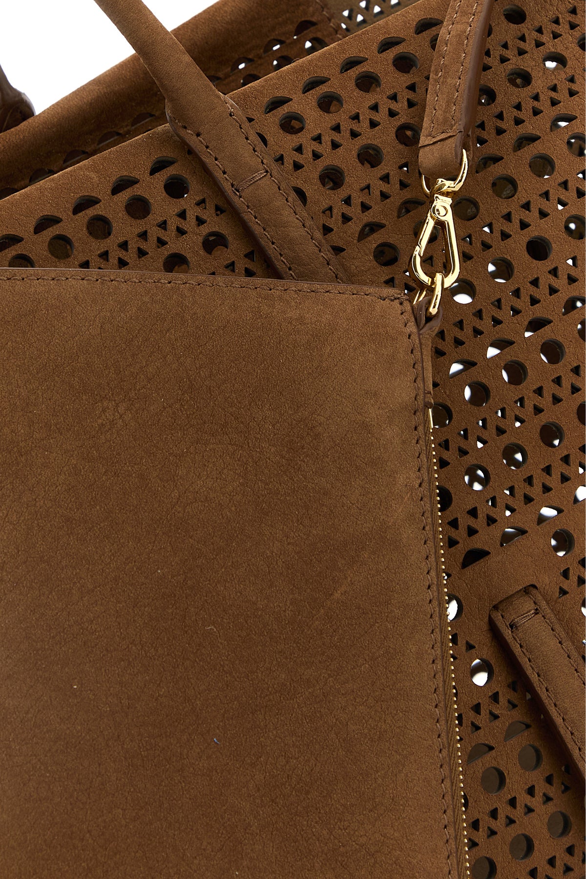 Shoulder bag realized in nubuck characterized by peculiar cut-out details on the entire surface.