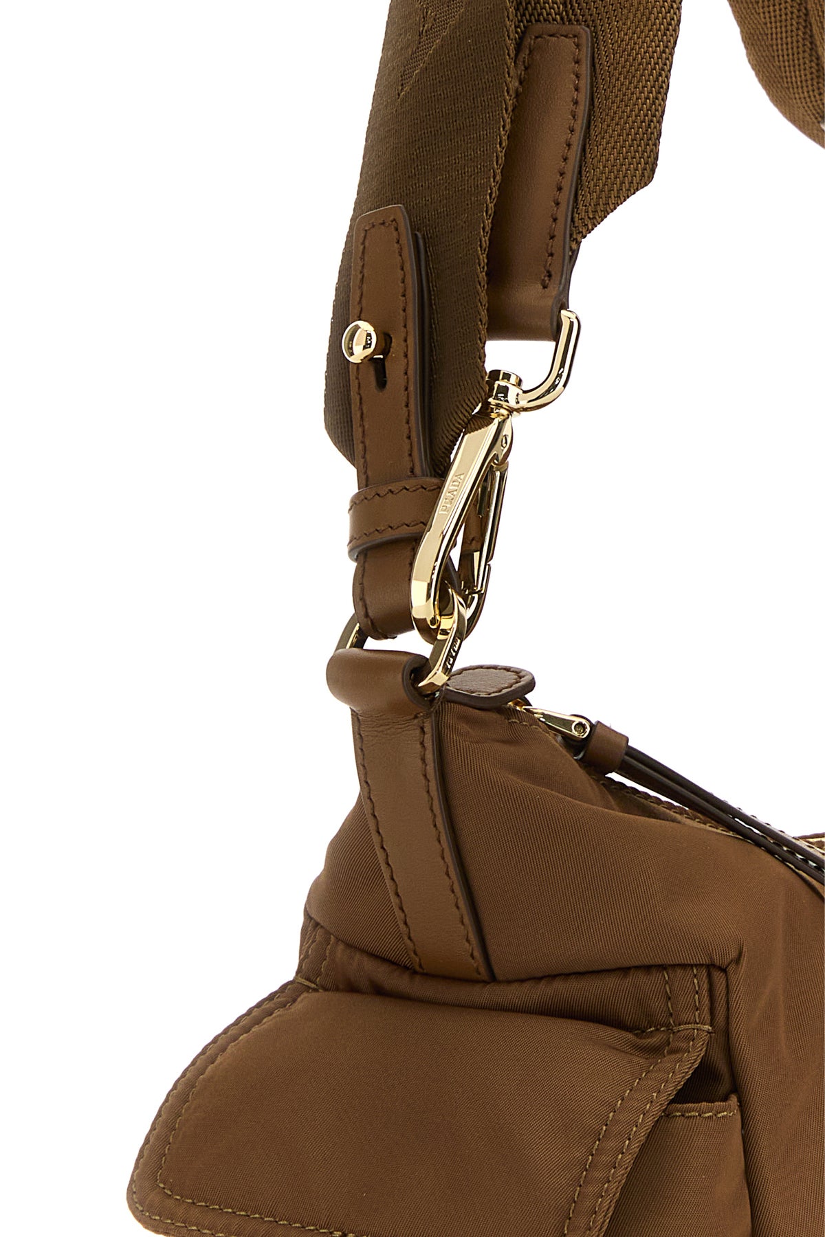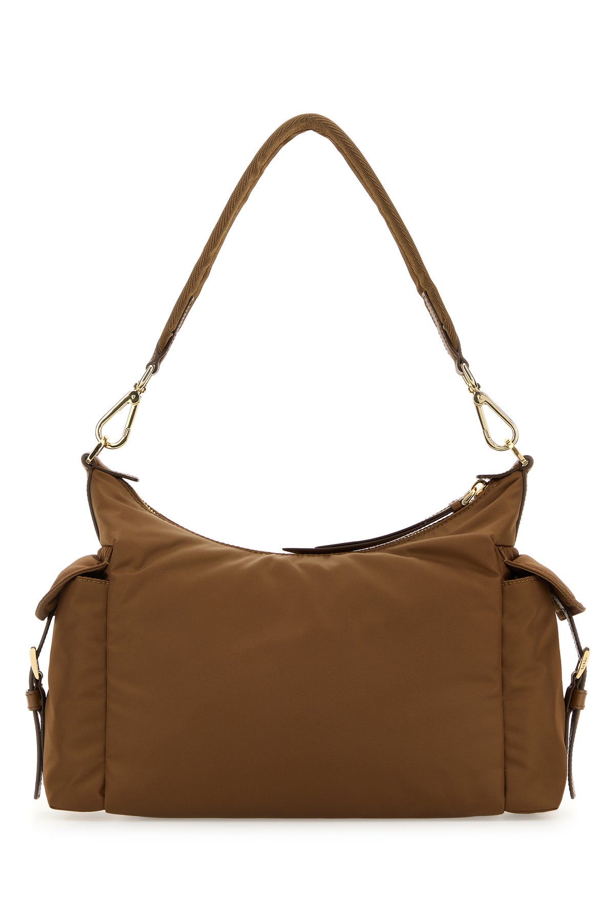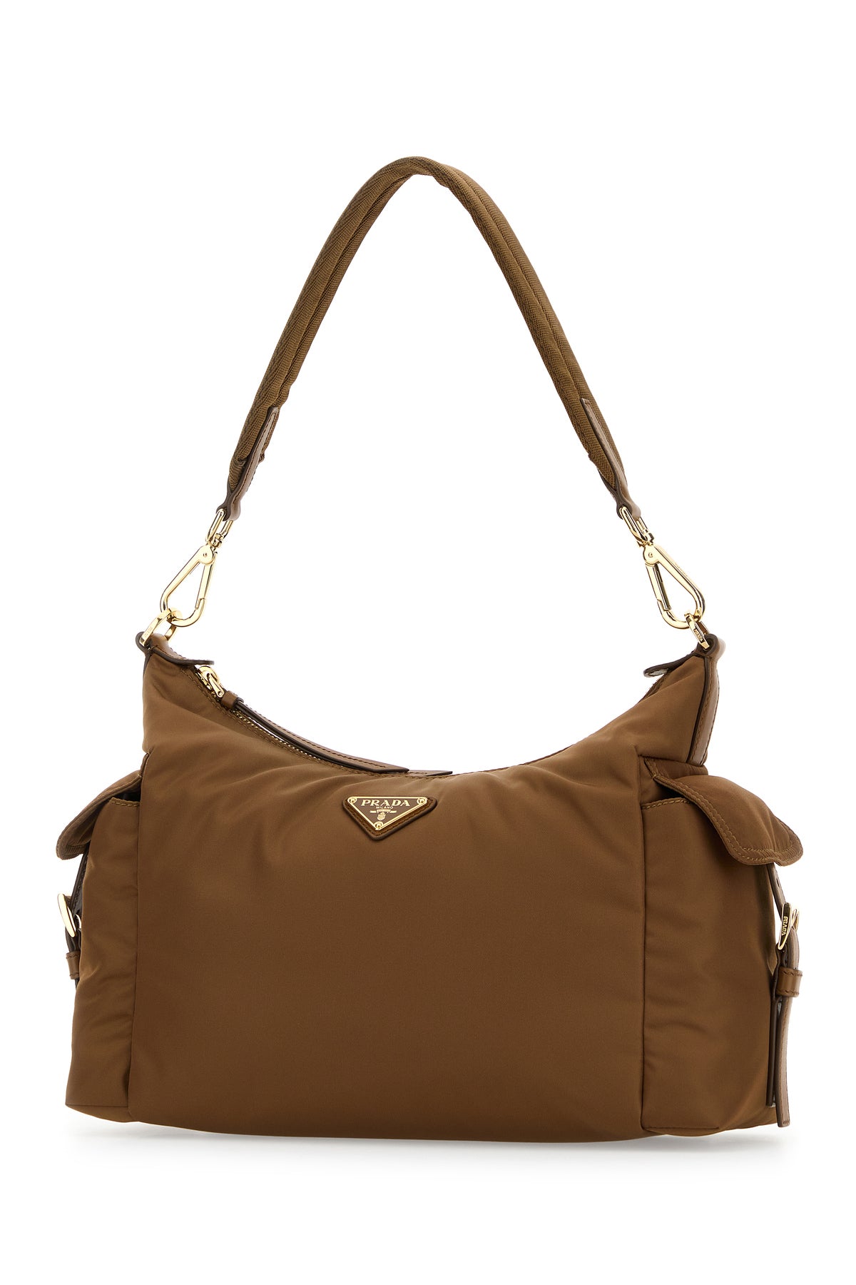 Shoulder bag realized in Re-Nylon enriched by iconico logoed metal triangle at the front.