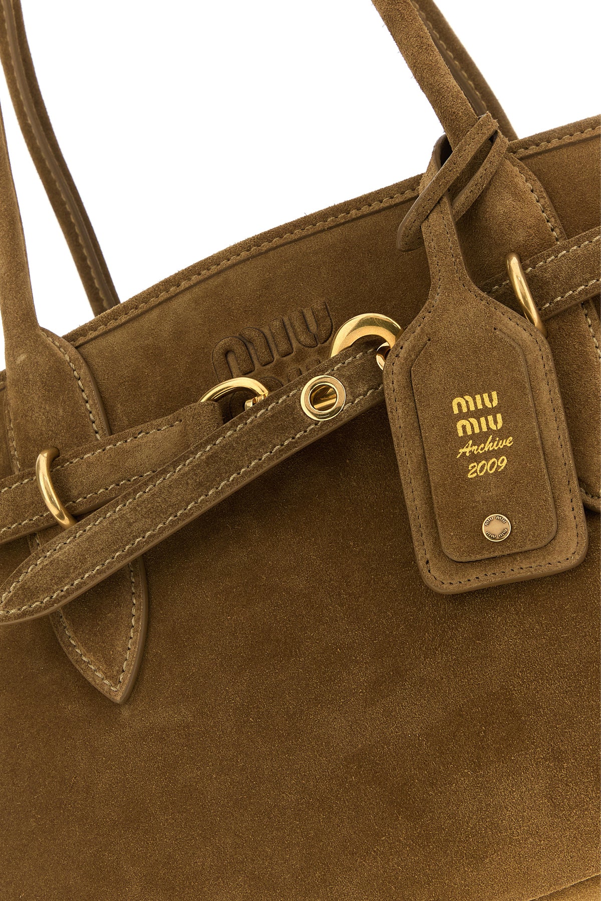 Shoulder bag realized in suede characterized by logo in relief at the front.