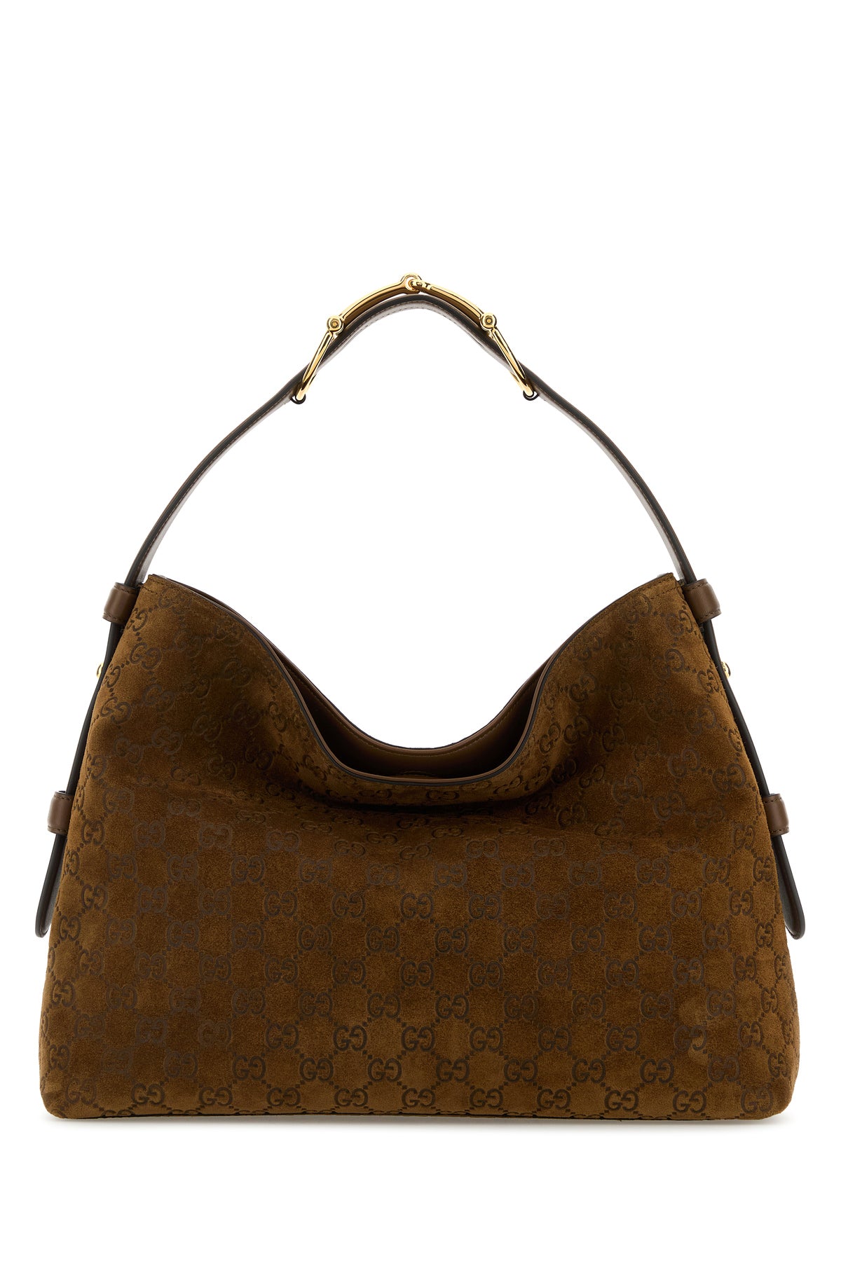 Shopping bag realized in suede characterized by embossed GG motif on the entire surface.