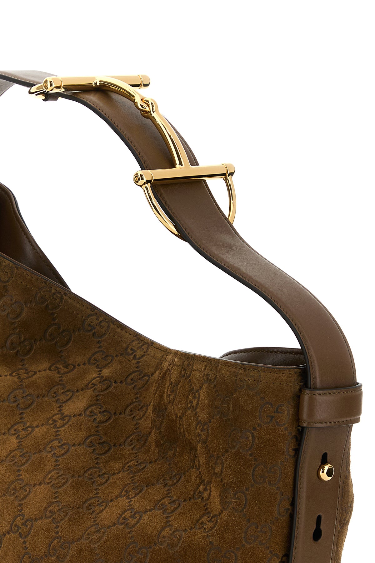 - Adjustable tonal leather shoulder strap with Horsebit metal detail