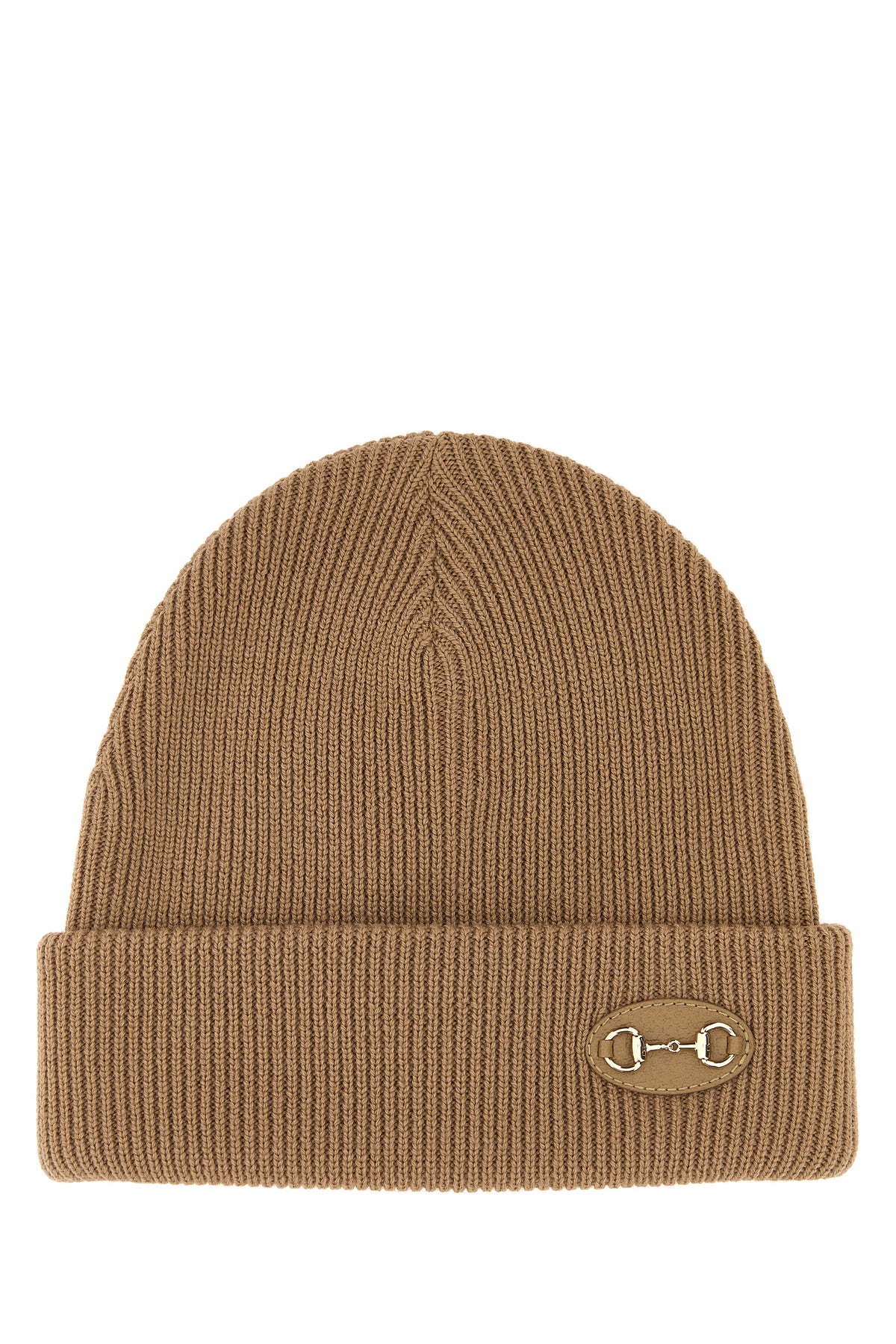 Beanie hat realized in pure wool enriched by Horsebit metal detail on the hemline.