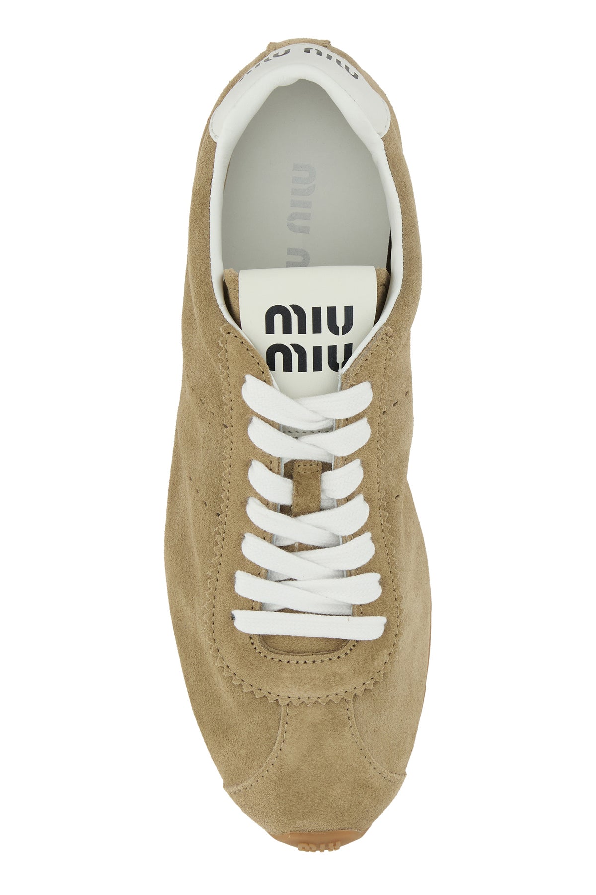 Sneakers realized in suede characterized by printed logo on the contrasting heel.